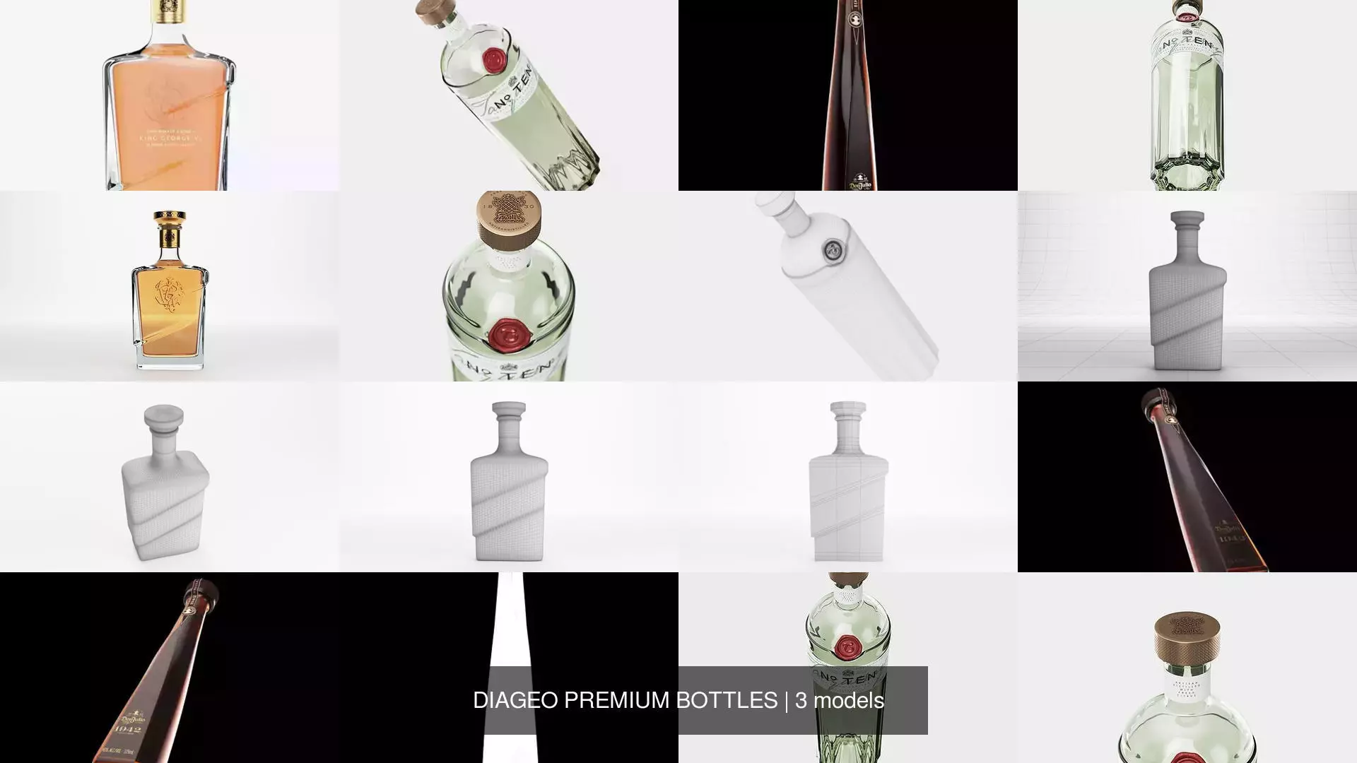 This package includes a set of 3D models of realistic bottles based on various recognized brands, ideal for visualization projects, commercial renderings, animations, video games or virtual/augmented realistic settings.