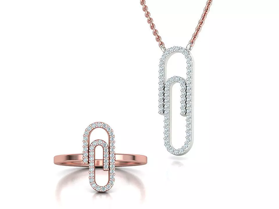 Diamond PAPER CLIP COLLECTION Ring and Necklace 3dmodels 3D Model Pack