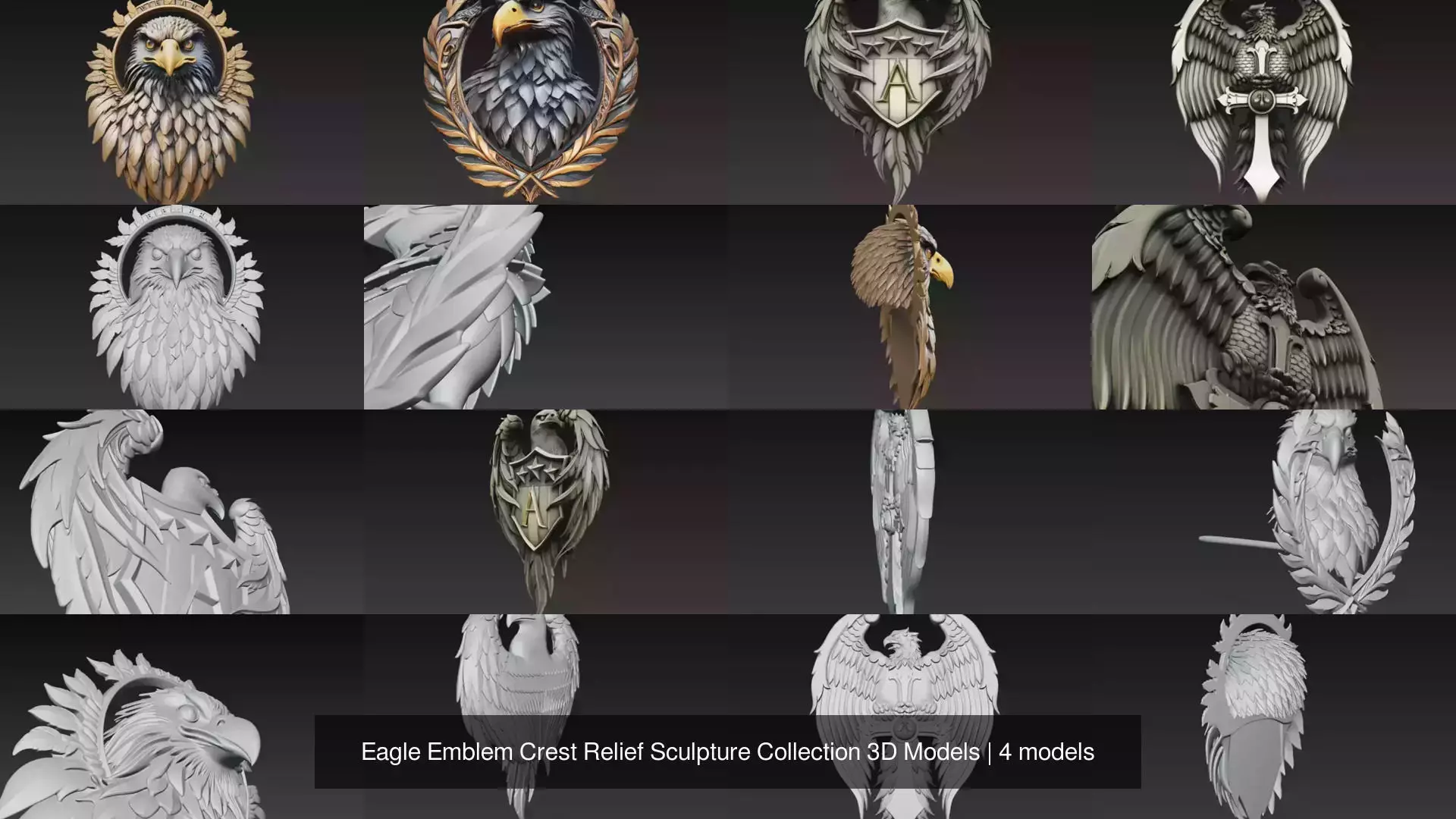 This collection features a powerful set of eagle-themed emblem and crest relief sculptures designed with a strong and symbolic aesthetic.
