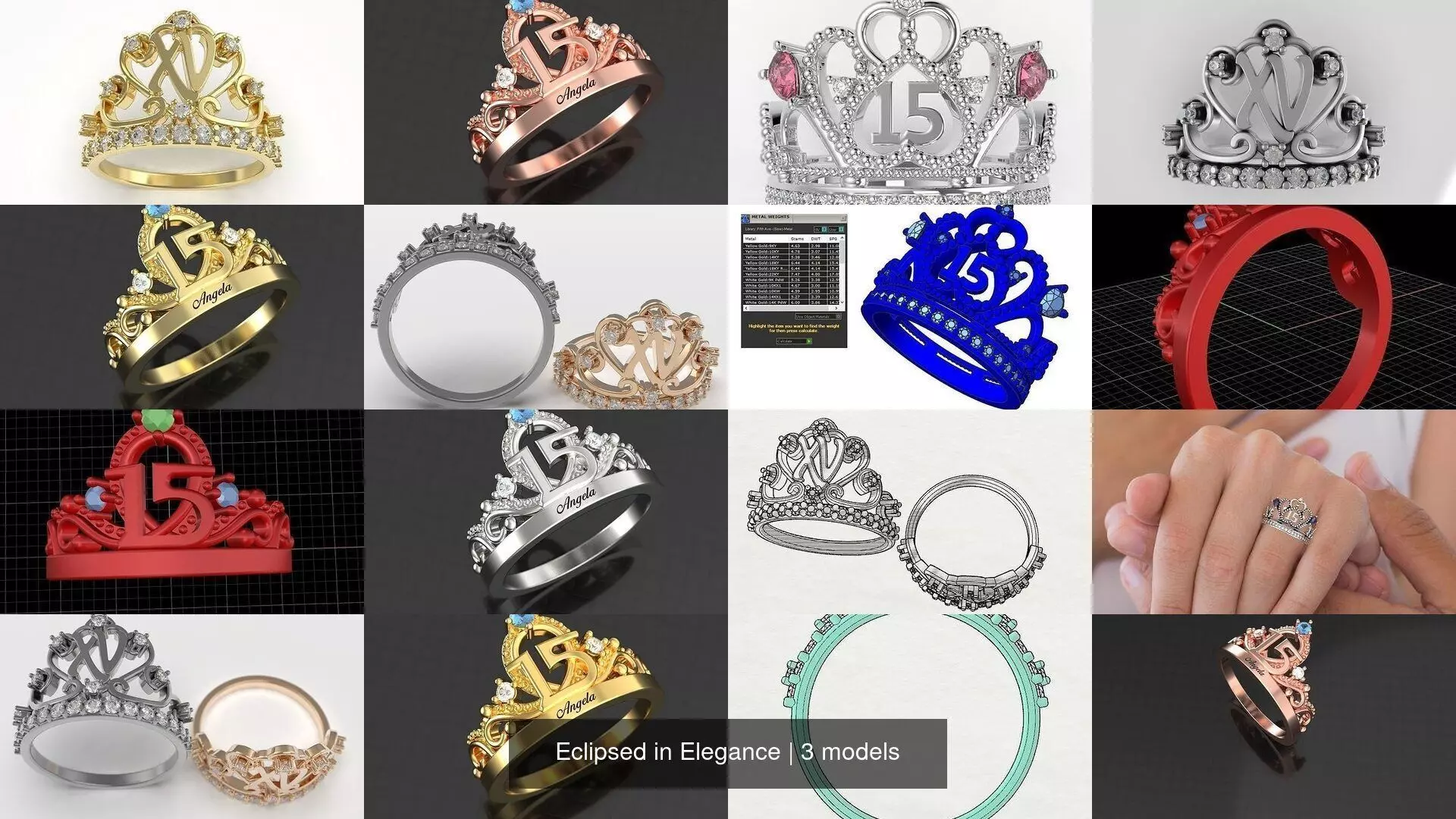 “Eclipsed in Elegance” – Commemorative 15-Year Celebration RingsEach ring in this 3D collection is more than a gift — it’s a tribute to 15 years of cherished memories, growth, and timeless connection. These rings fuse luxurious craftsmanship with symbolic depth, designed for those who understand that milestones deserve masterpieces. Design Features: