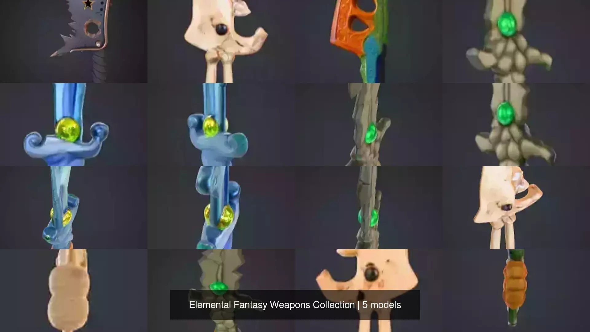 The Elemental Fantasy Weapons Collection is a high-quality 3D asset pack featuring a variety of enchanted blades, mystical daggers, and brutal cleavers forged from different elements. Each weapon carries its own distinct theme and story, ranging from bone-crafted tribal relics to glowing gemstone-infused daggers and brutal dark cleavers scarred by battle.