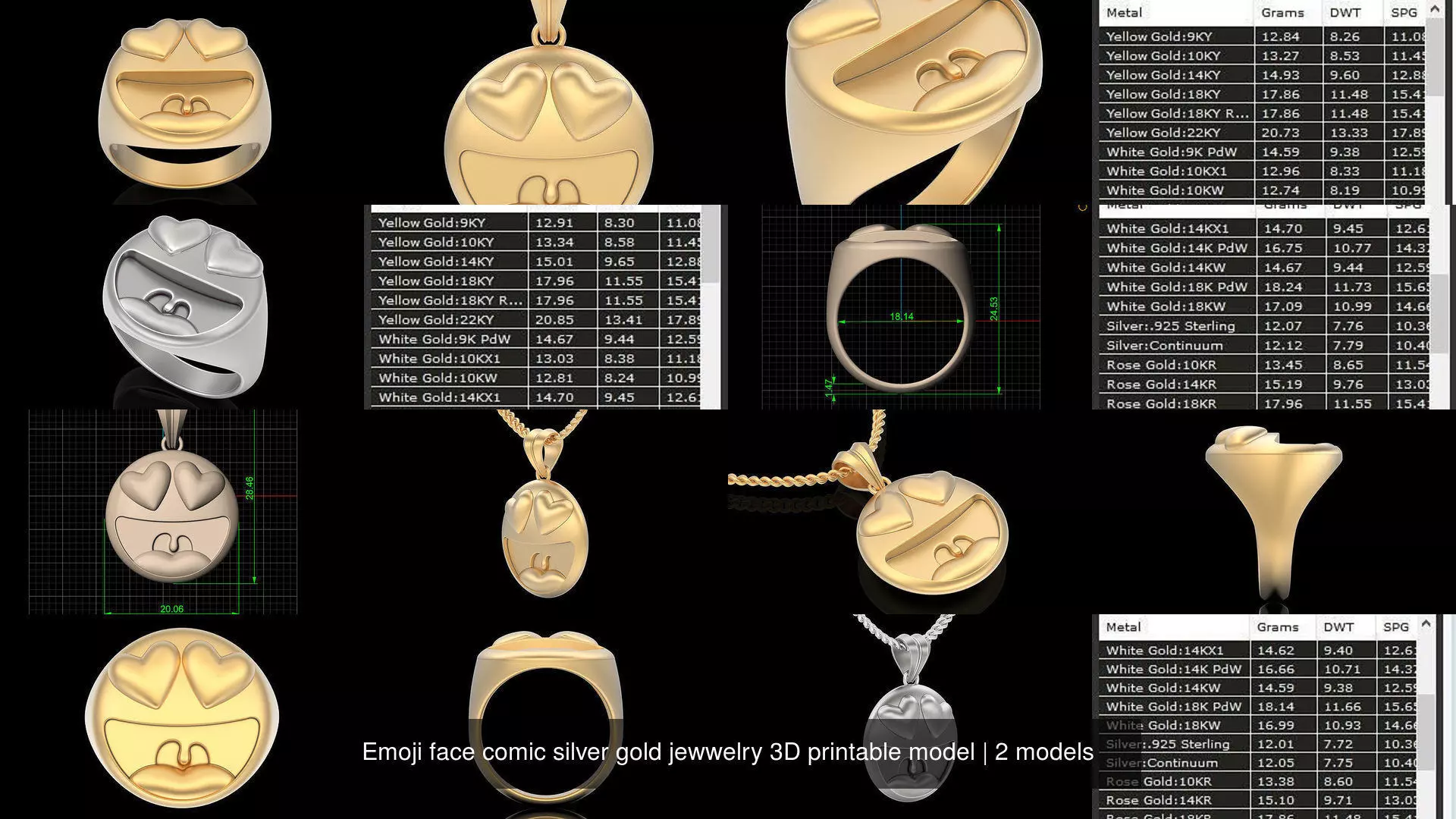 Emoji face comic silver gold jewwelry 3D printable model 3D Model Pack