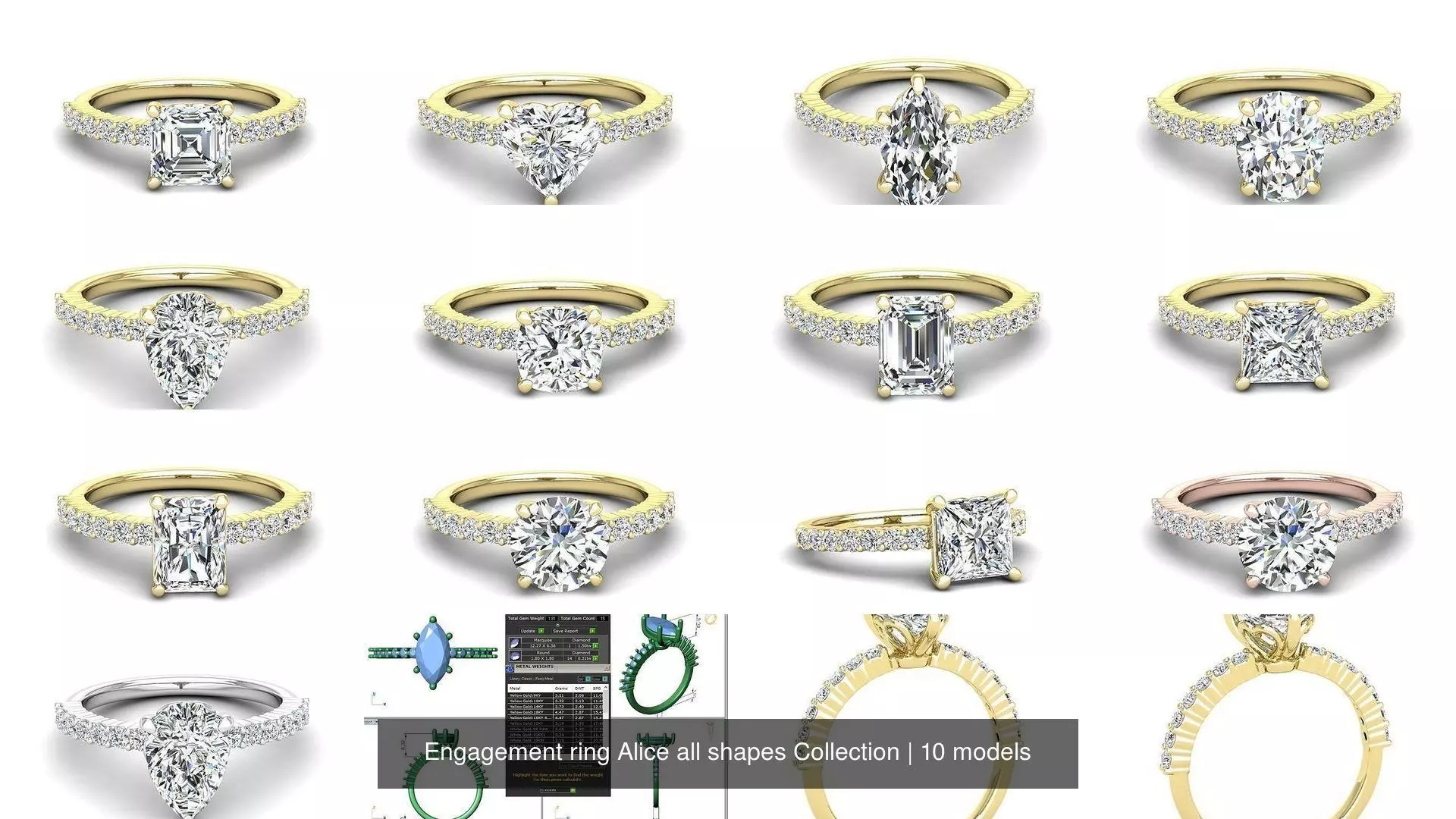 Engagement ring Alice all shapes Collection 3D Model Pack