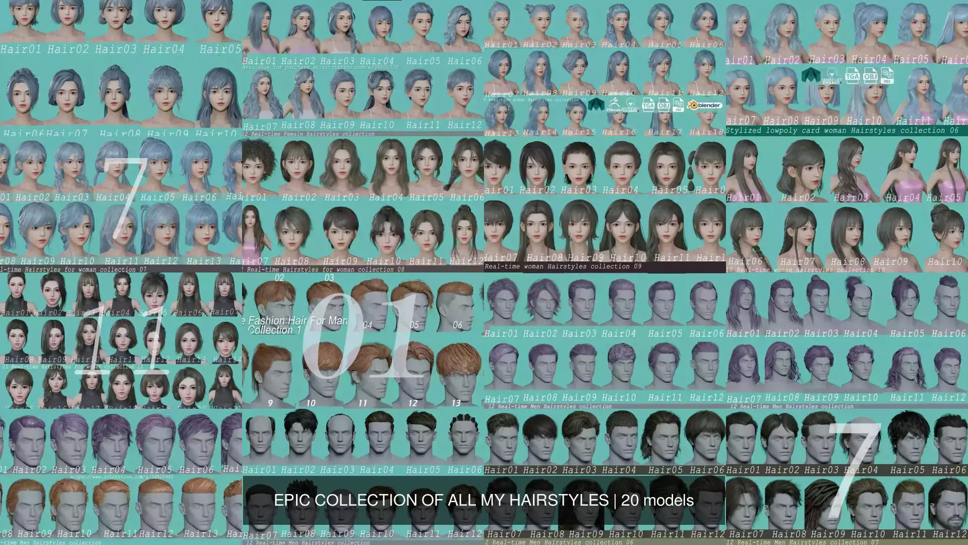 Suitable for games & both low-poly & high-poly characters.Hairstyles can be split and combined into more hairstyles.