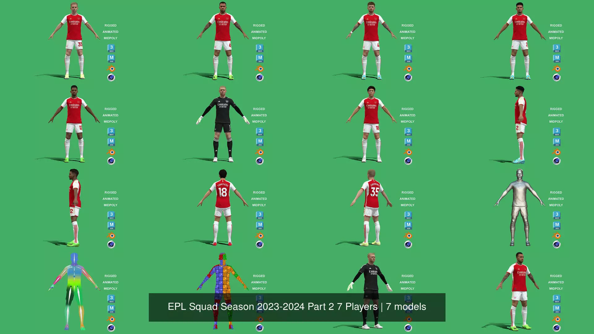 For sample download:https://3dpassion.net/product/arsenal-squad-season-2023-2024-part-2-7-players/