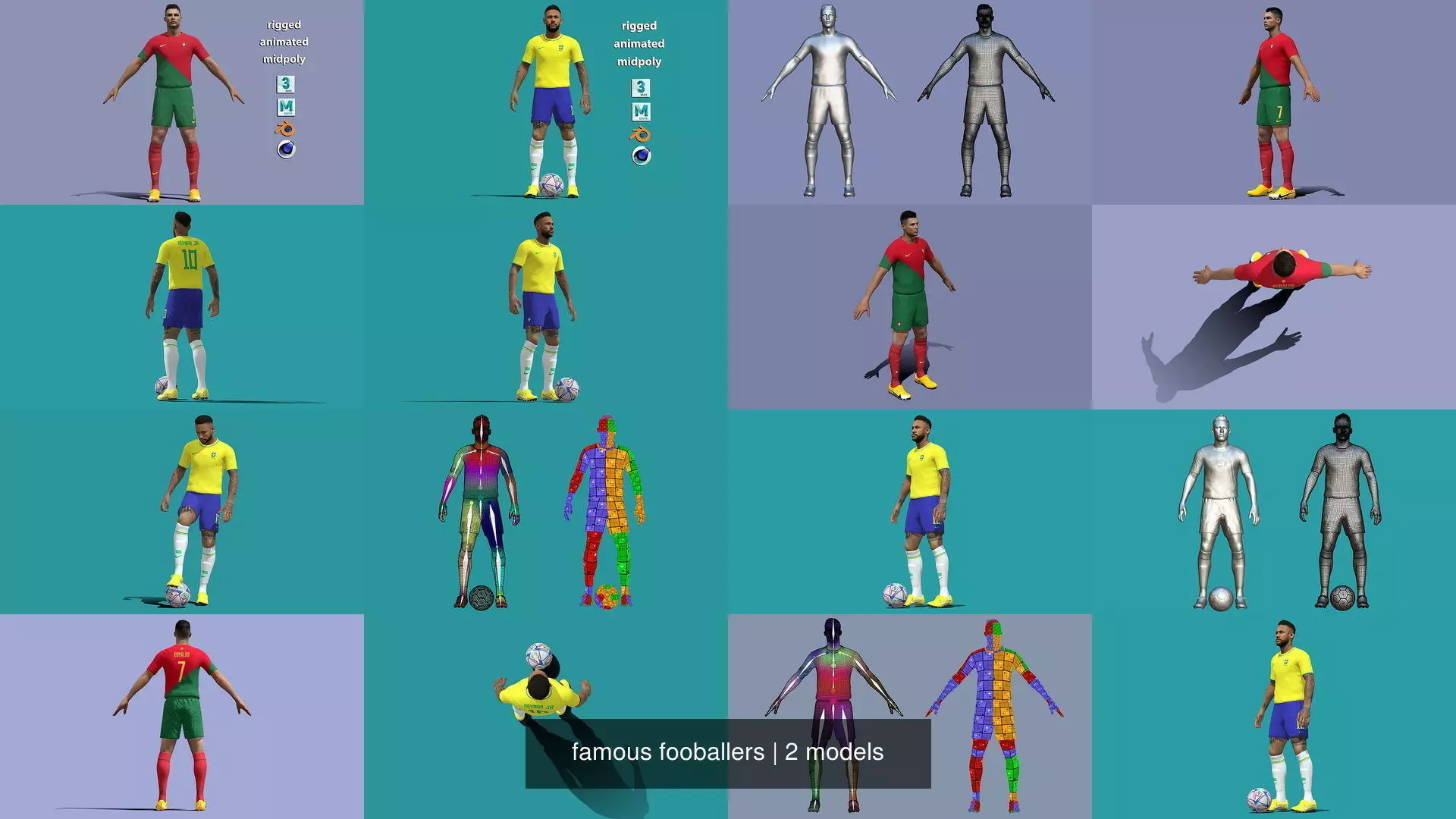 Messi, Ronaldo, Neymar 3d rigged model