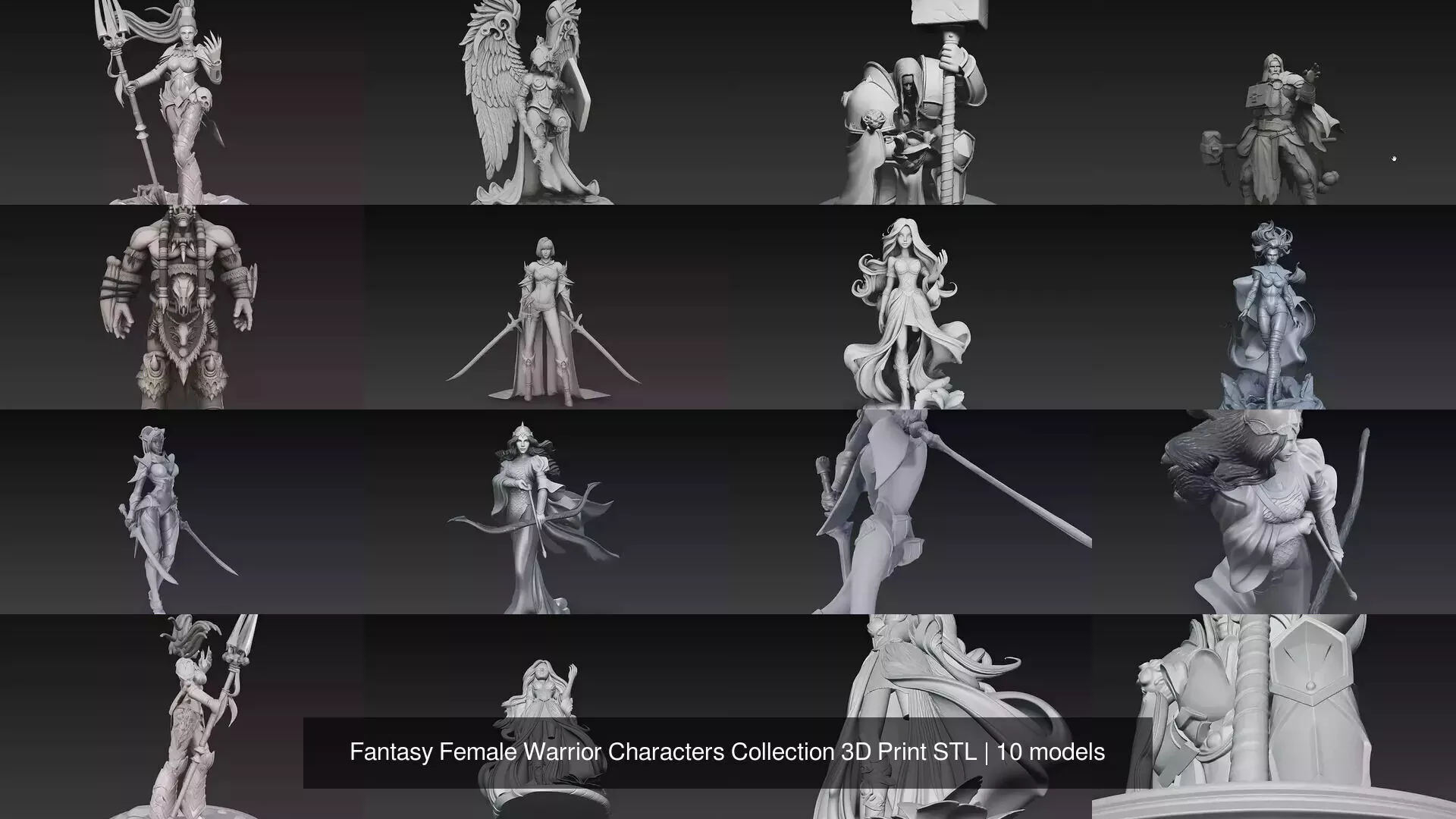 Fantasy Female Warrior Characters Collection is a premium high-detail 3D model set featuring powerful female fighters, heroic characters, and stylized fantasy figures.