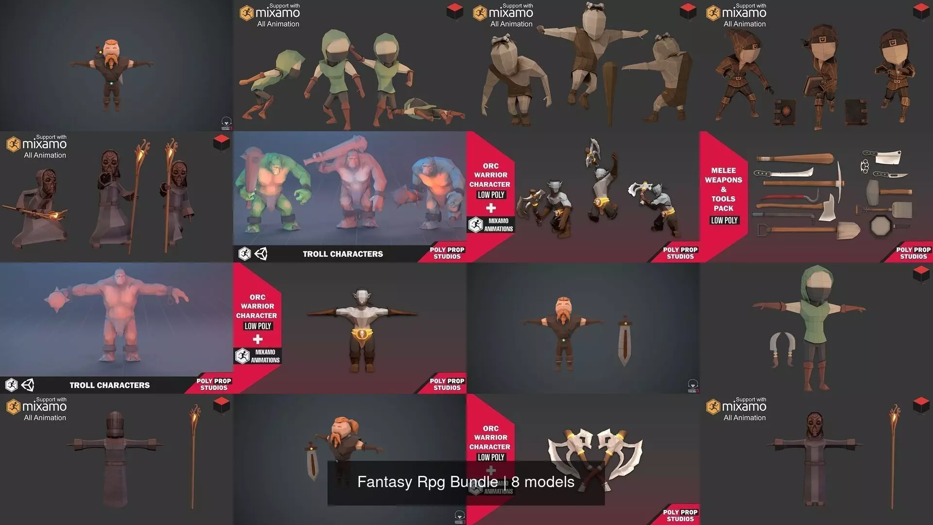 Caveman Fantasy Character and Weapon Low Poly Model/Game Ready /Rig/ All Animation MİXAMO