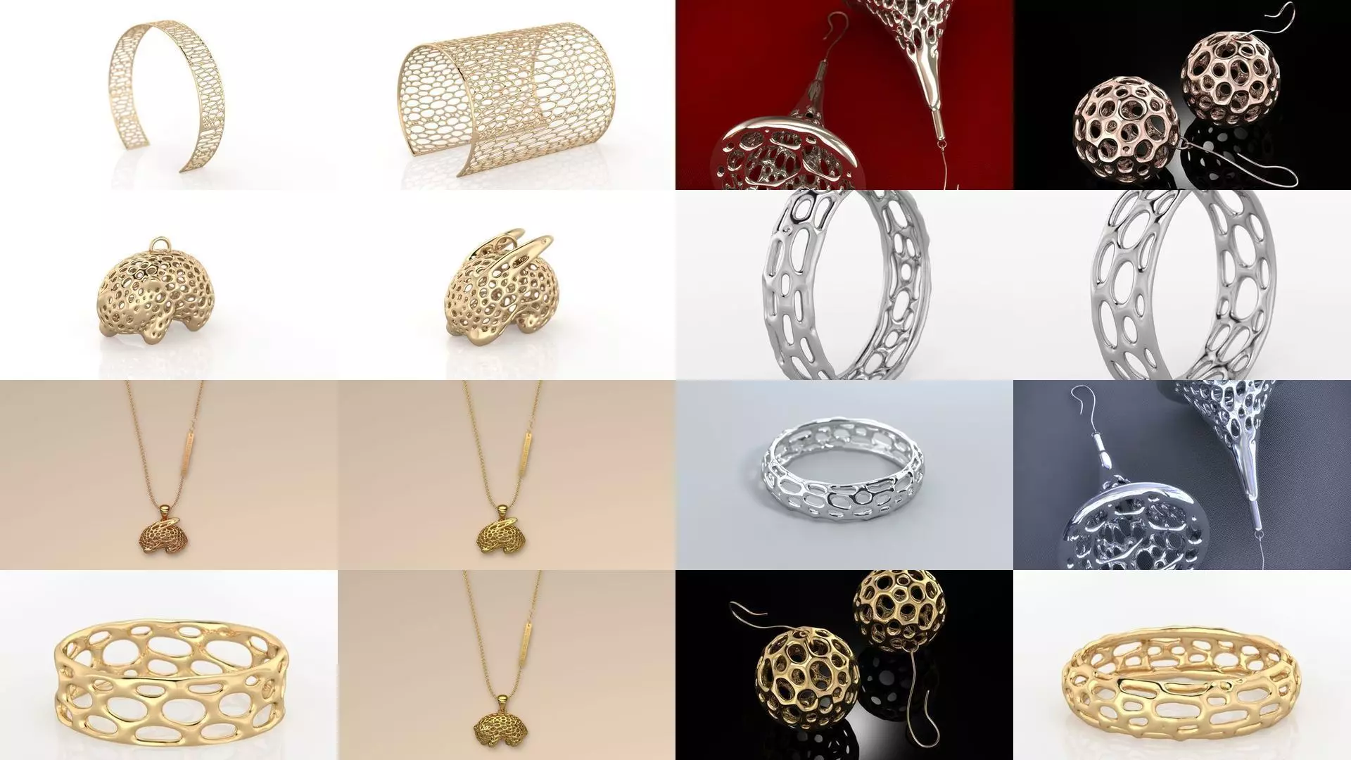 All these Voronoi 3D models are ideal for 3D printing. These models are checked for holes and incorrect objects. Models are perfect for fashionable catalogs and renderings.