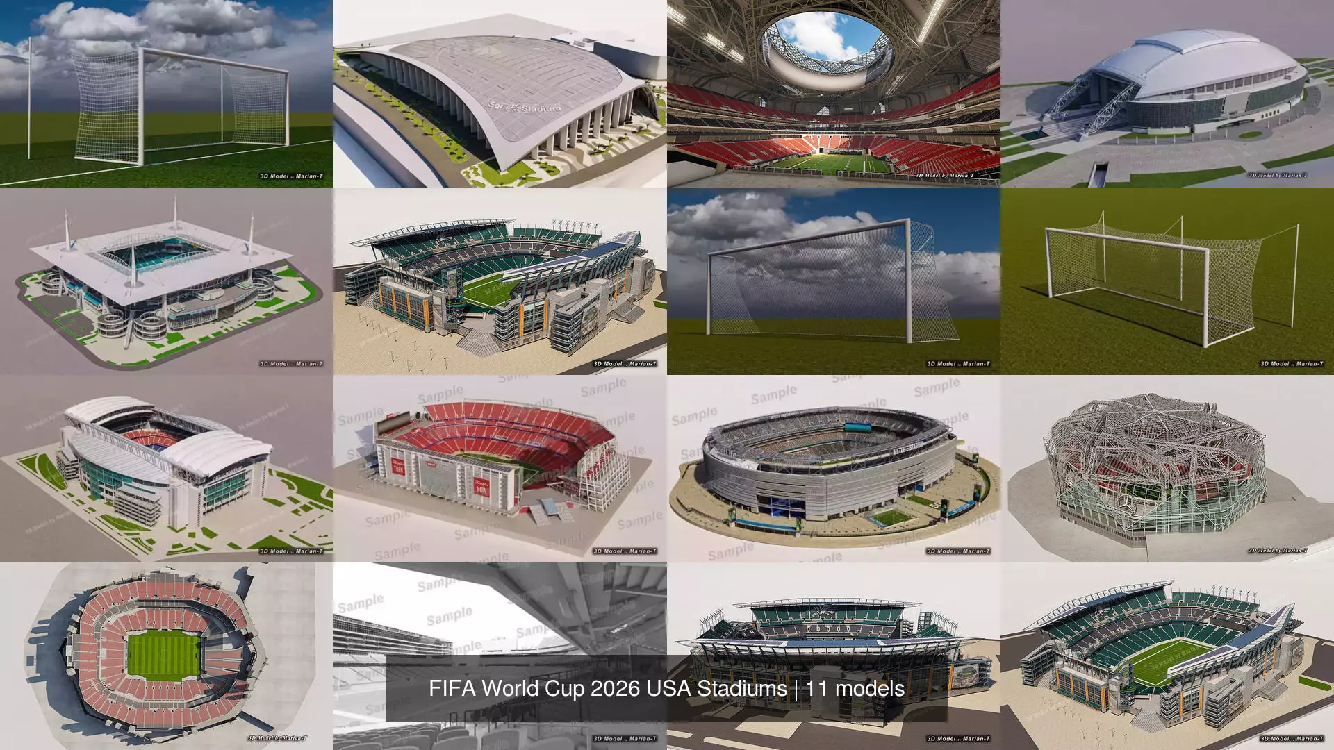 This Pack contains 8 high detailed CGI 3D models of the stadiums that will host the official matches from the United States at the 2026 FIFA World Cup. Ideal for virtual simulations, architectural visualization, and event planning projects.