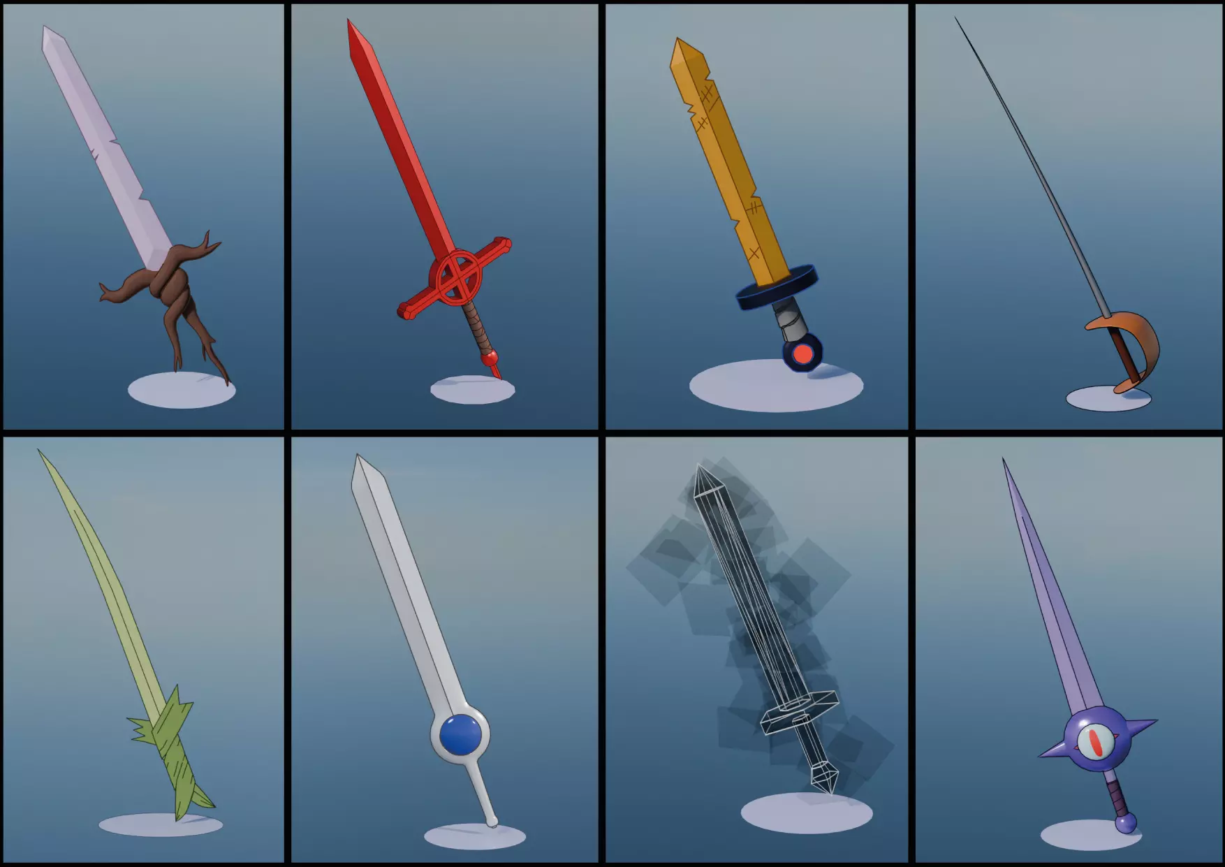 Collection with all the 8 relevant Finn swords from Adventure Time. Includes: Golden Swords, Root Sword, Demon Blood Swords, Grass Swords, Finn Sword, 4D Sword, Small Sword and Night Sword.