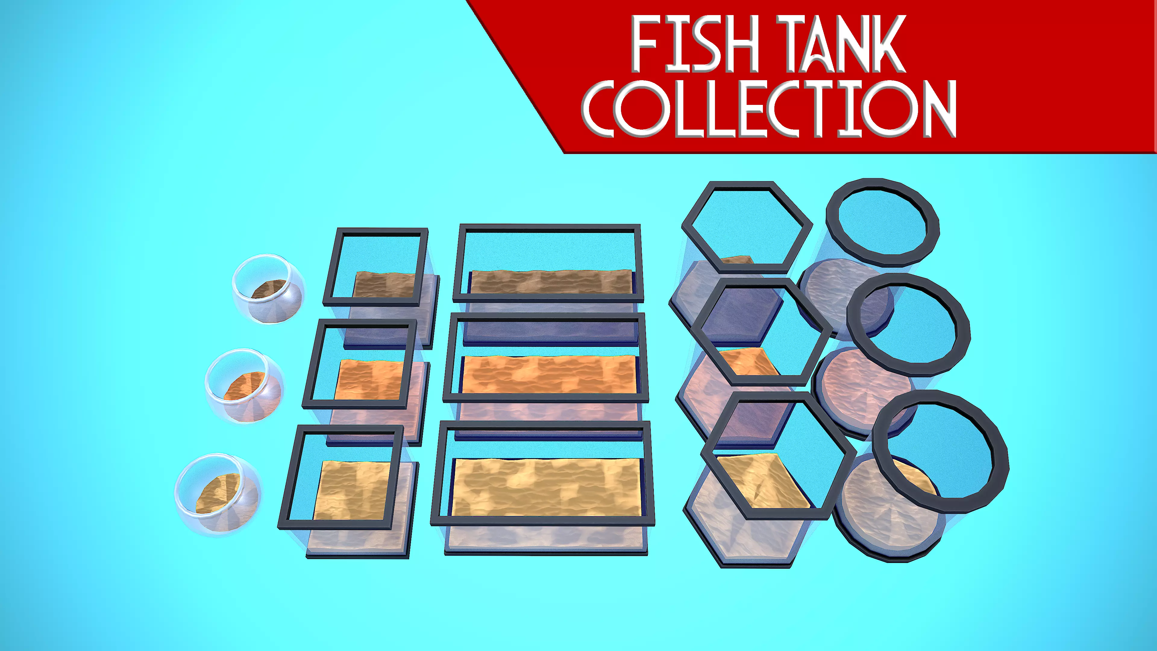 Low poly textured model of FISH BOWL & TANK COLLECTION CARTOON STYLIZED. Well-textured and ready for Virtual Reality (VR), Augmented Reality (AR), games and other real-time apps for handheld devices.