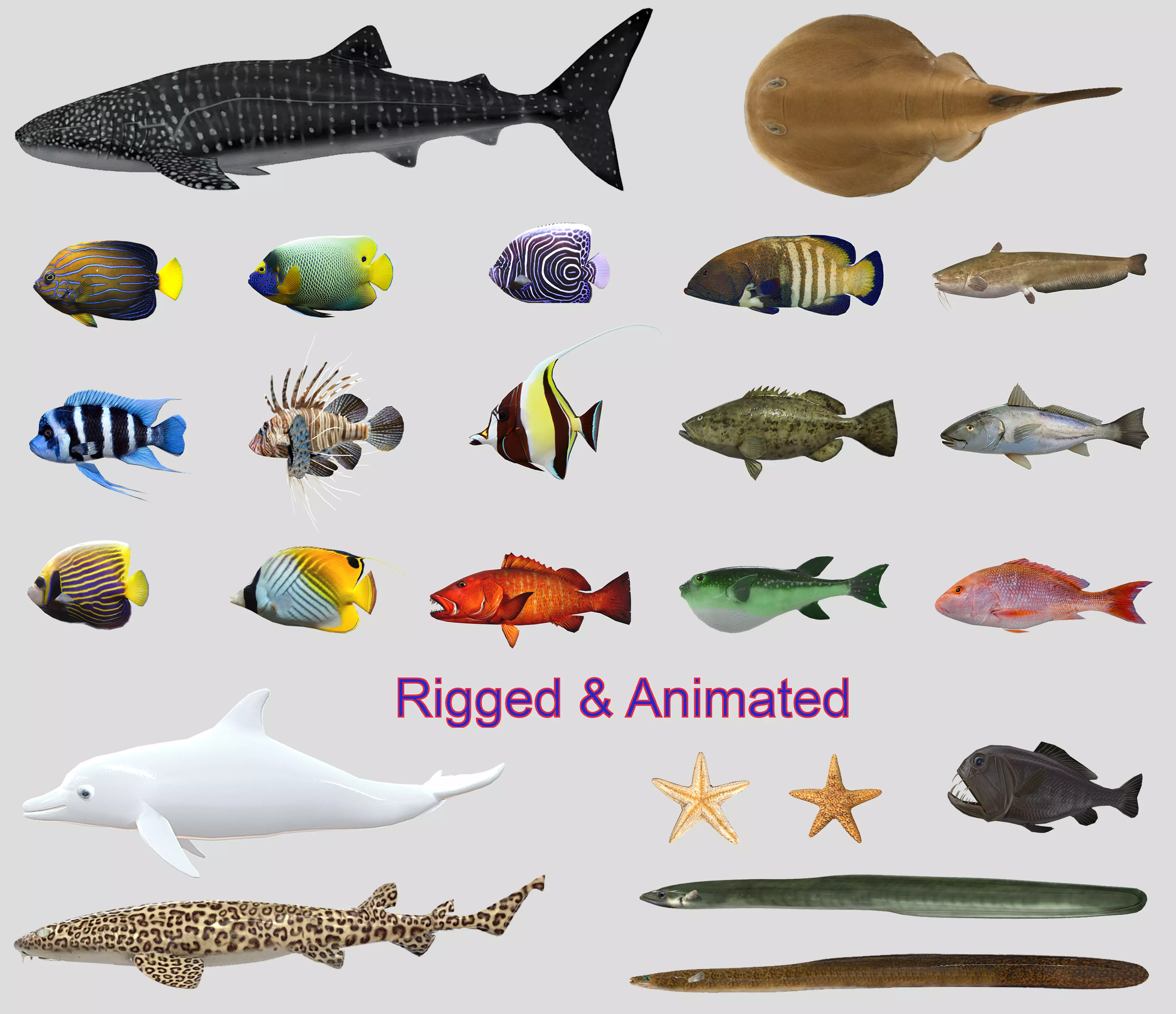 Low poly Fish Collection Animated - Game Ready Pack 6 Include 23 Fish types: