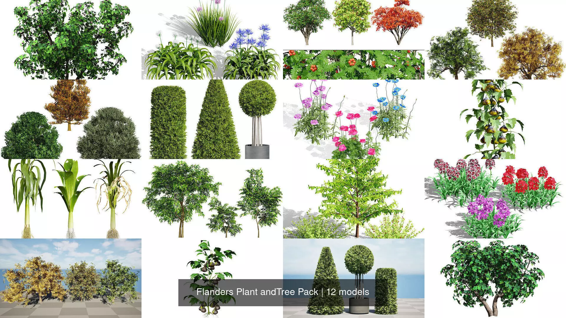 Enhance your 3D environments with this comprehensive collection of high-quality plant and tree models. This pack offers a diverse range of flora, perfect for adding realism and detail to your projects.