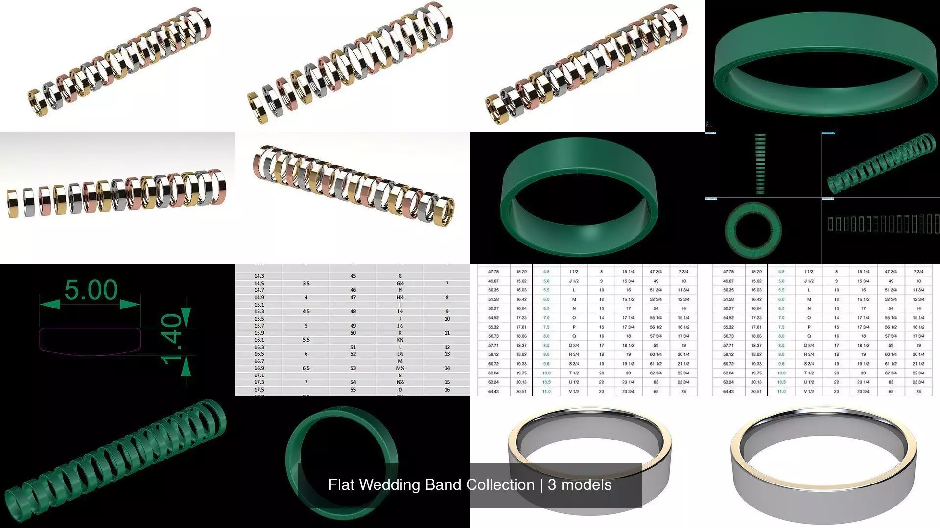 This collection includes the Flat Wedding Band 3.0, 4.0 and 5.0 mm wide, 3d printable model.