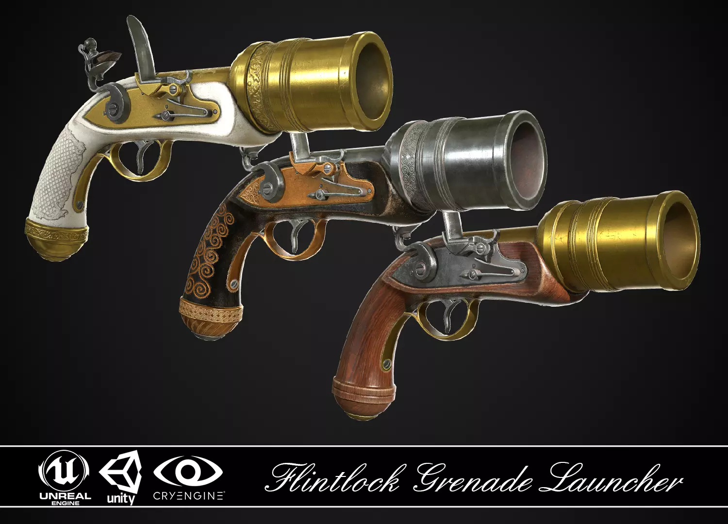 This model is designed for use in any engine supporting PBR rendering, such as Unity, UnrealEngine, CryEngine and others.