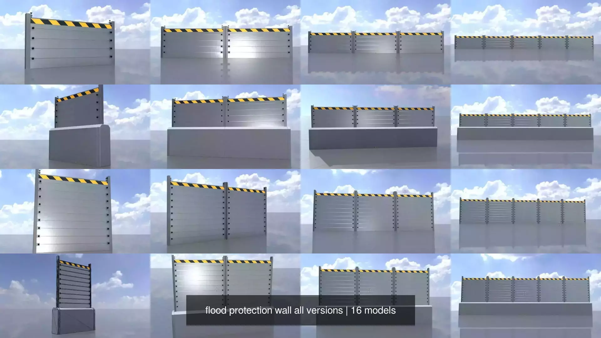- This model of a flood barrier has been realistically modeled and textured.