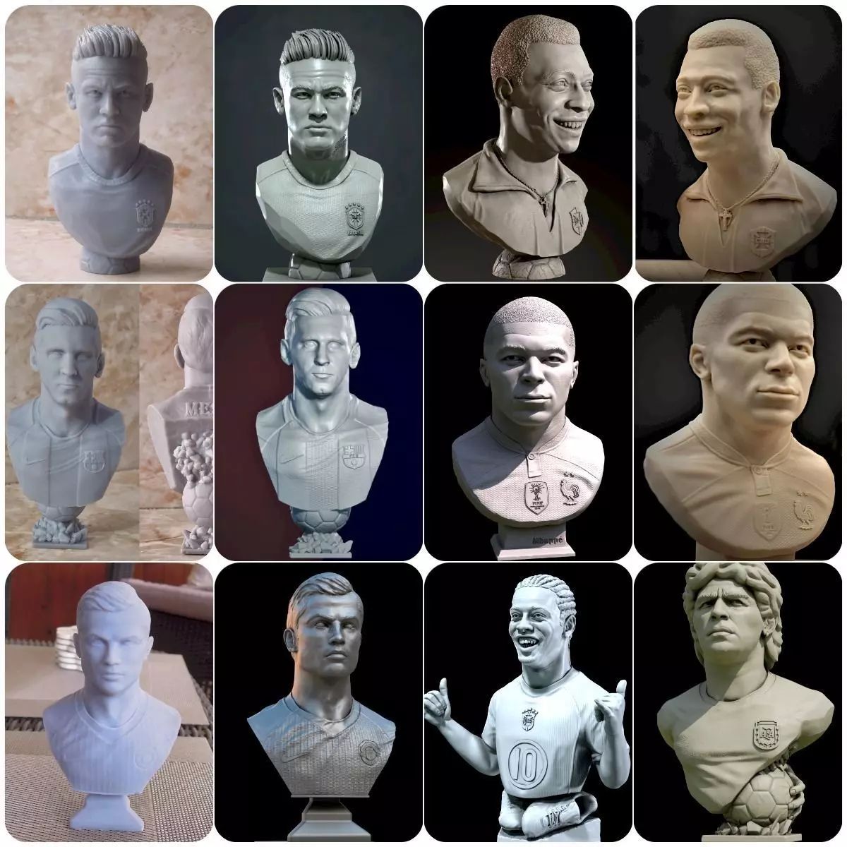 Collection of my print-ready football player models. The collection includes models of Messi(Barcelona shirt), Ronaldo(Manchester United shirt), Mbappe, Pele, Maradona, Neymar, and Ronaldinho.