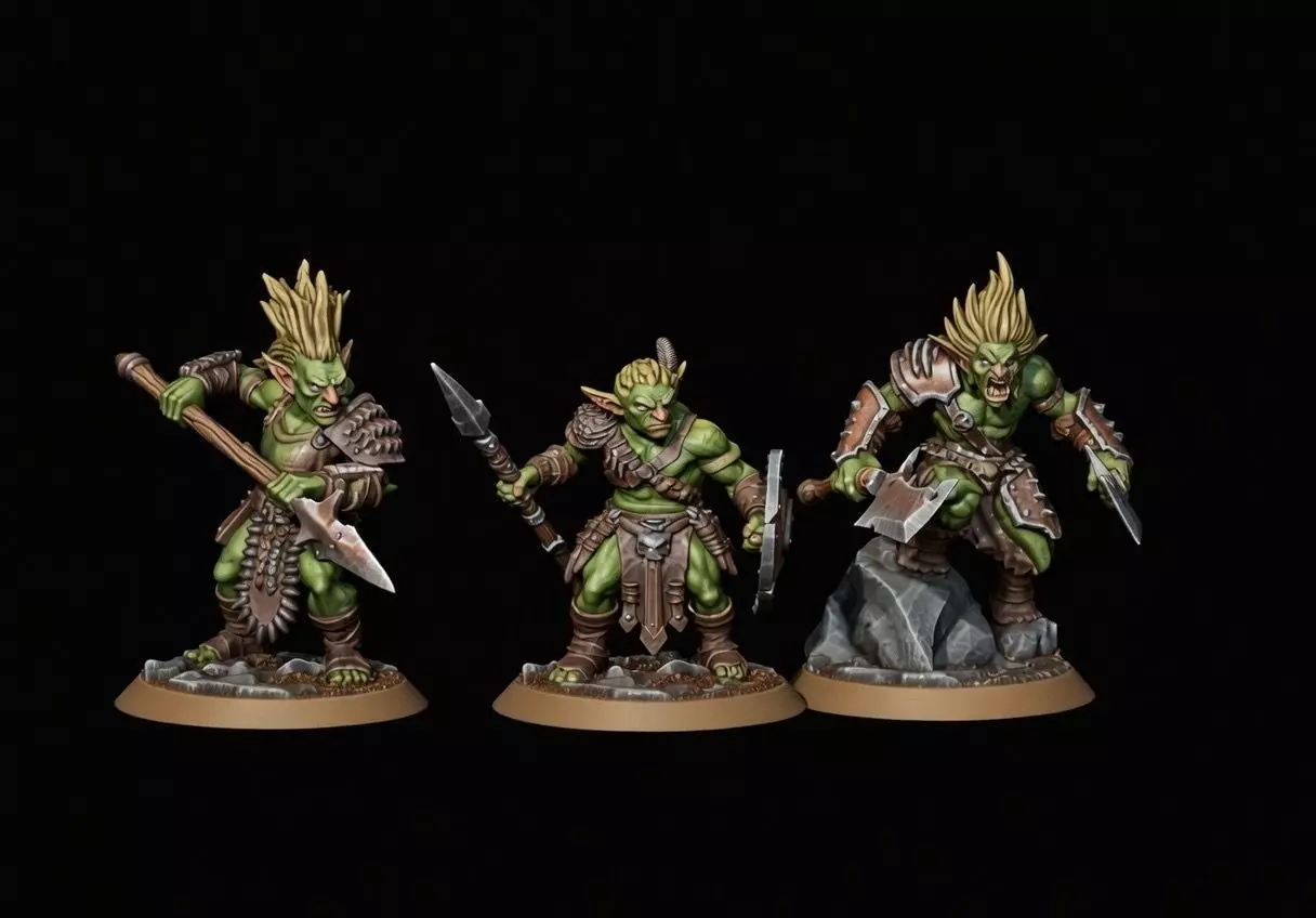 These models capture the mischievous yet menacing essence of goblins, with snarling faces, muscular builds, and intricate details like bone necklaces and fur-trimmed skirts. Whether you're building an orc alliance, stocking a dungeon with foes, or just collecting fantasy minis, this pack is a must-have for hobbyists and game masters.