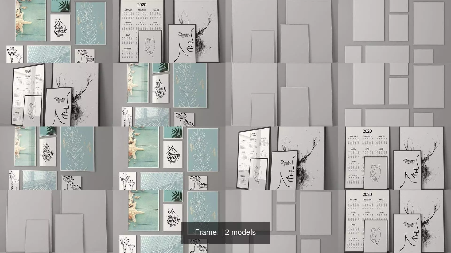 Frame pictures and drawings on wall 3D Model Pack