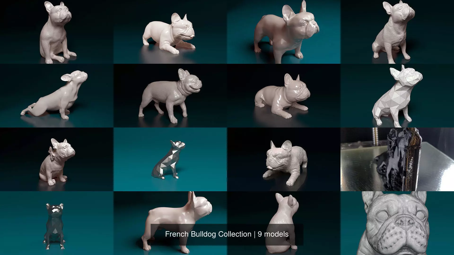 Set of French Bulldog 3D print modelsCollection consists of 9 items: