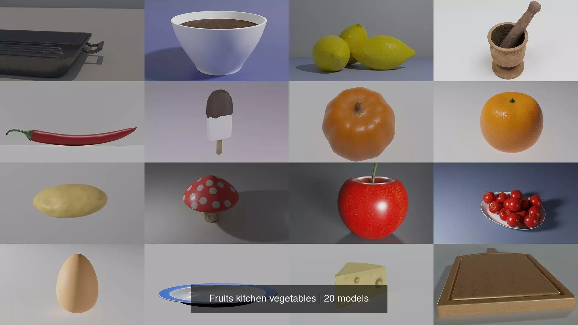 Fruits kitchen vegetables 3D Model Pack