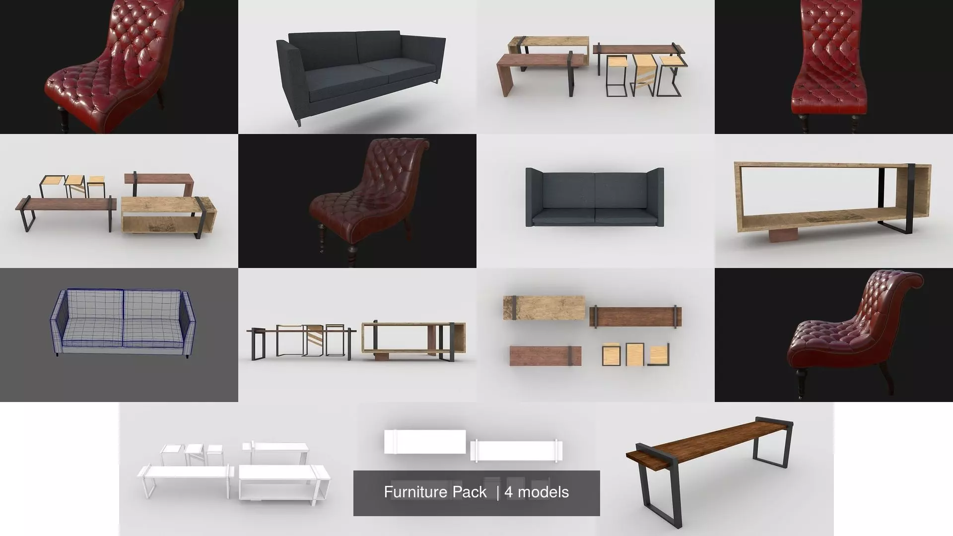 This is an Pack created from my furniture models selling on Cgtrader Include a Chair, and 2 Sofas and The Black and Wooden Pack low poly and Ready for games and for rendering project, textures comes in zip. Texture maps are for unreal Engine and Vray but if you need another format or extencion just ask. also color and Heigt map can be remplaced. Enjoy!for unreal 4 or unity3D texture pack ask me.