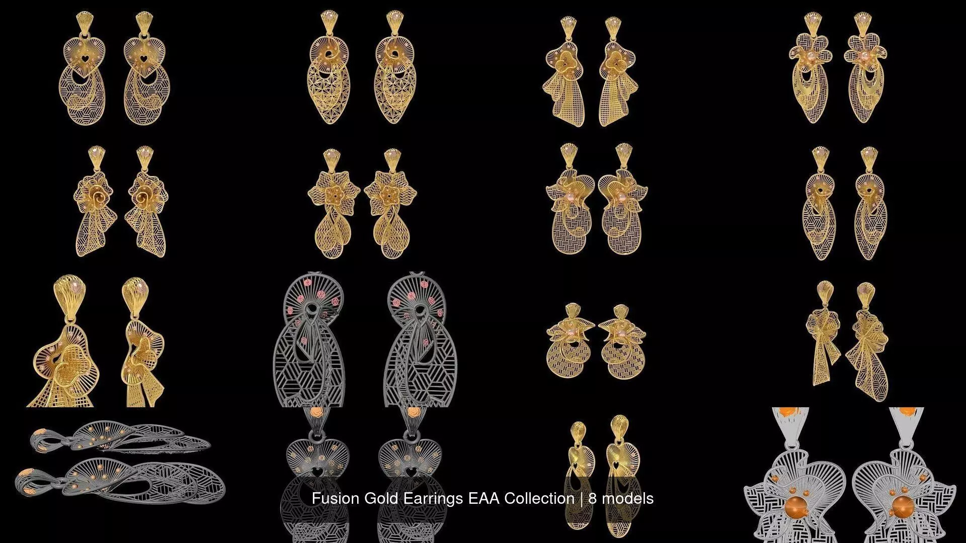 Fusion Gold Earrings EAA Collection 3D Model Pack