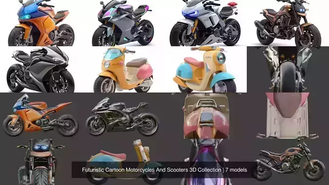Futuristic Cartoon Motorcycles & Scooters 3D Collection