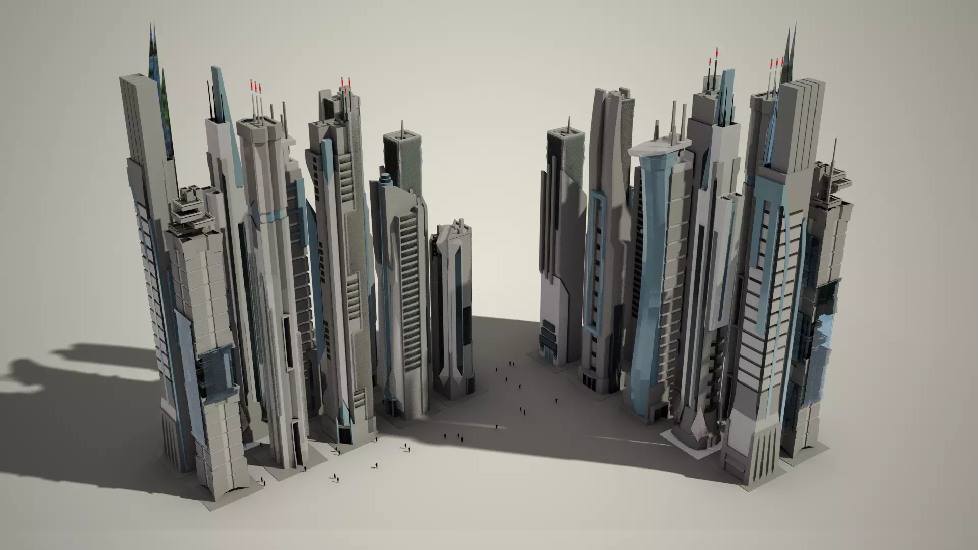 Futuristic Isometric City Collection. Ten Scycrapers, all stilized and low poly. Perfect for games or animations. City landscape.
