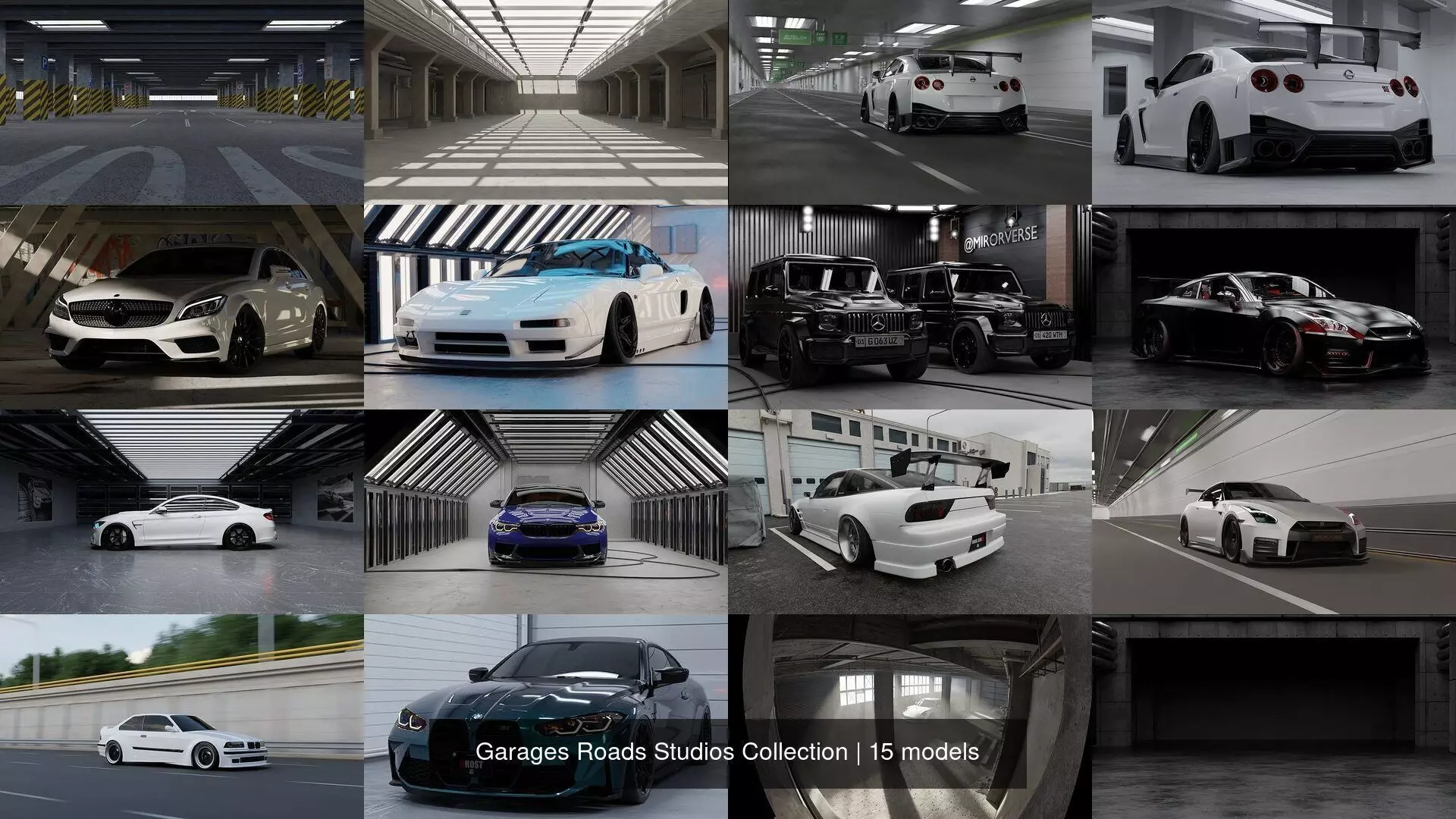 The Garage, Roads, Studios Collection is a meticulously curated set of 3D assets designed to bring life to automotive and industrial scenes. From realistic garages and workshops to expansive road environments and professional studio setups, this collection provides a comprehensive range of high-quality assets for creating immersive automotive visualizations, product showcases, and game environments.