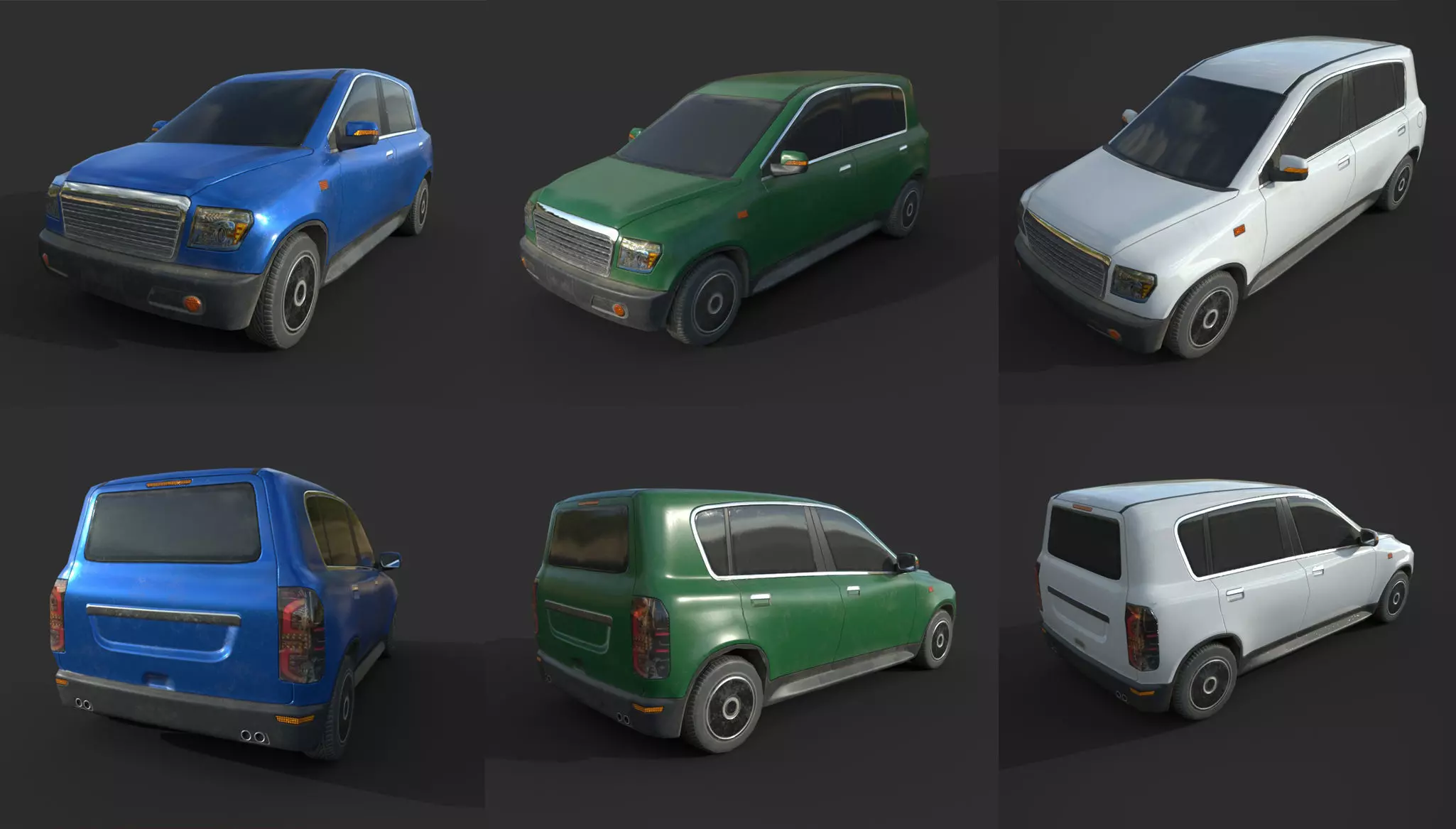 Generic real scale vehicle brand claim proof with realistic textures, very clean topology, low-poly game ready. Pivots for the wheels in right position for easy animation. Geometry position in (0.0.0) of the world and good naming convention. We use PBR(Metal-Roug) Textures 1x2k (2048x2048) + 2 LODs. I can provide higher resolution textures if you need it.