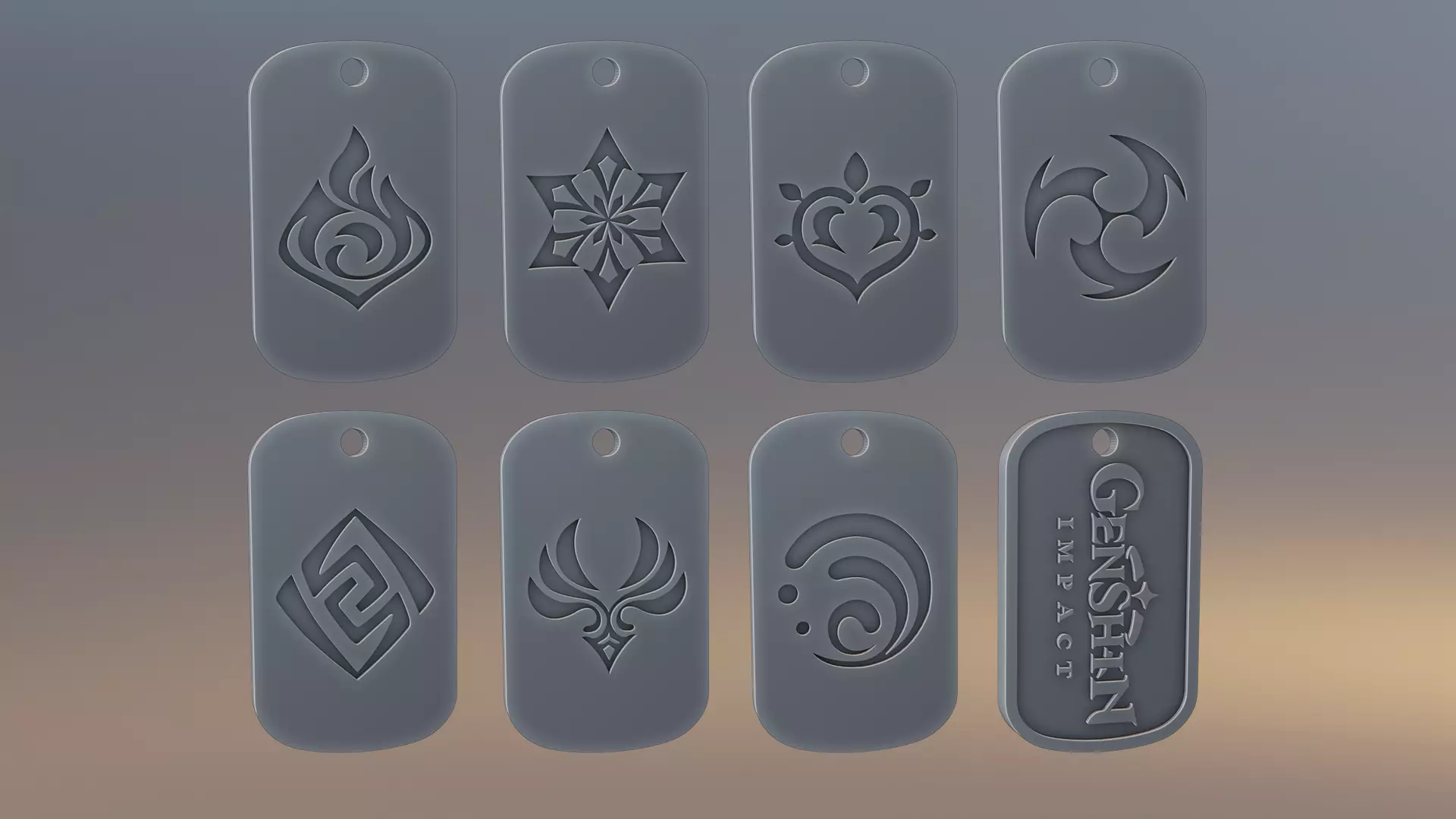 Genshin Impact all elements logos dogtag.