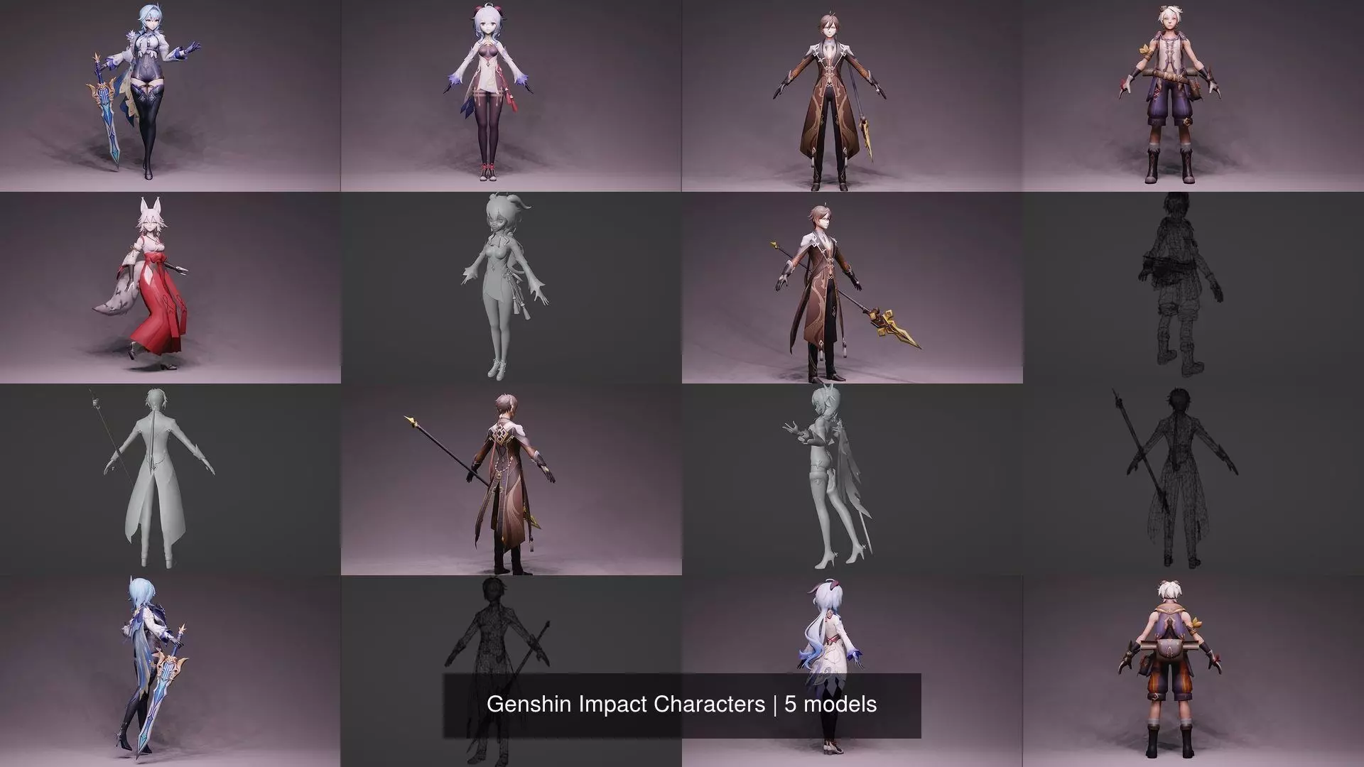 Introducing our Genshin Impact Characters 3D Collection – a carefully curated assortment of 5 finely crafted models, originally valued at $50. This collection immerses you in the enchanting world of Genshin Impact. Each character exudes exceptional detail, offering versatility for various scenes and applications. Experience unparalleled quality, boundless inspiration, and compatibility for animation, or simply your perfect 3D shelf collection. Seize this limited-time discount for a diverse range of captivating 3D models, including materials & textures in formats: .usd, .obj, .fbx, .stl, .blend. Elevate your creative projects with the iconic characters from Genshin Impact.