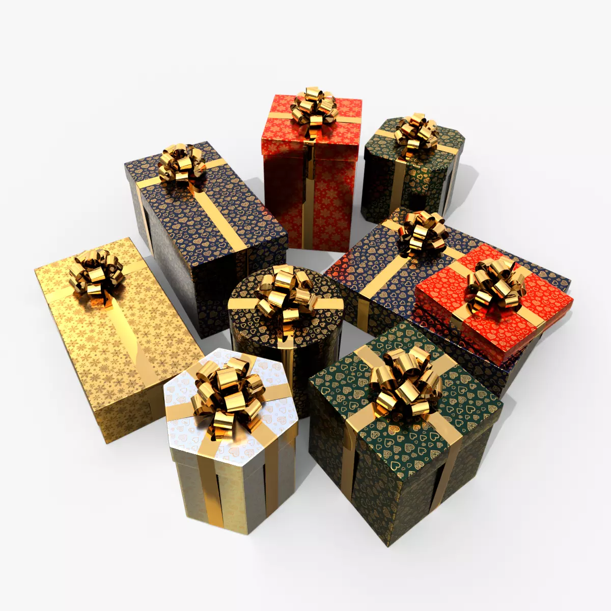 Gift Boxes - Signature Styles with Glossy Ribbon Rosette low-poly 3d model