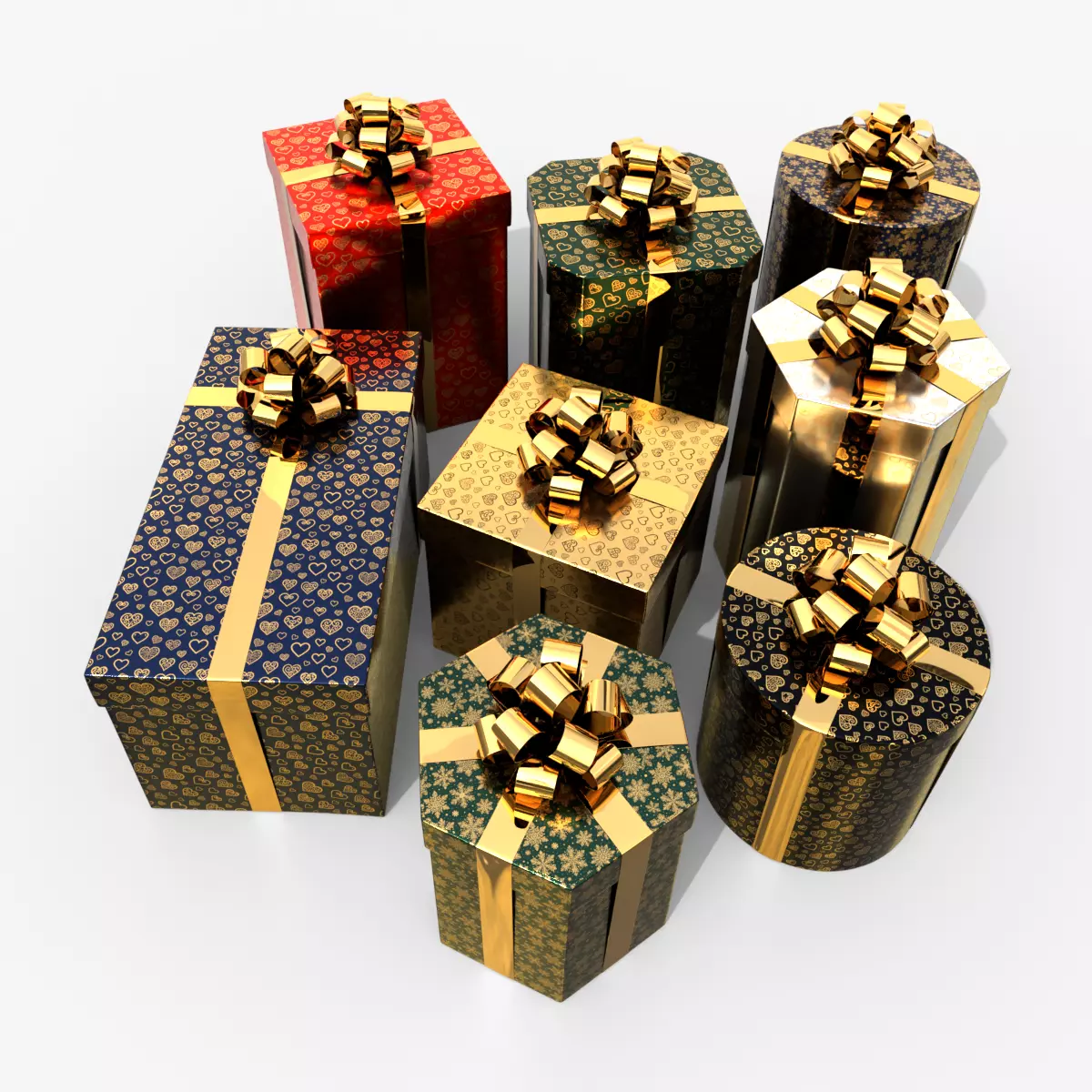 Gift Boxes - Vertical Variety with Glossy Ribbon Rosette low-poly 3d model