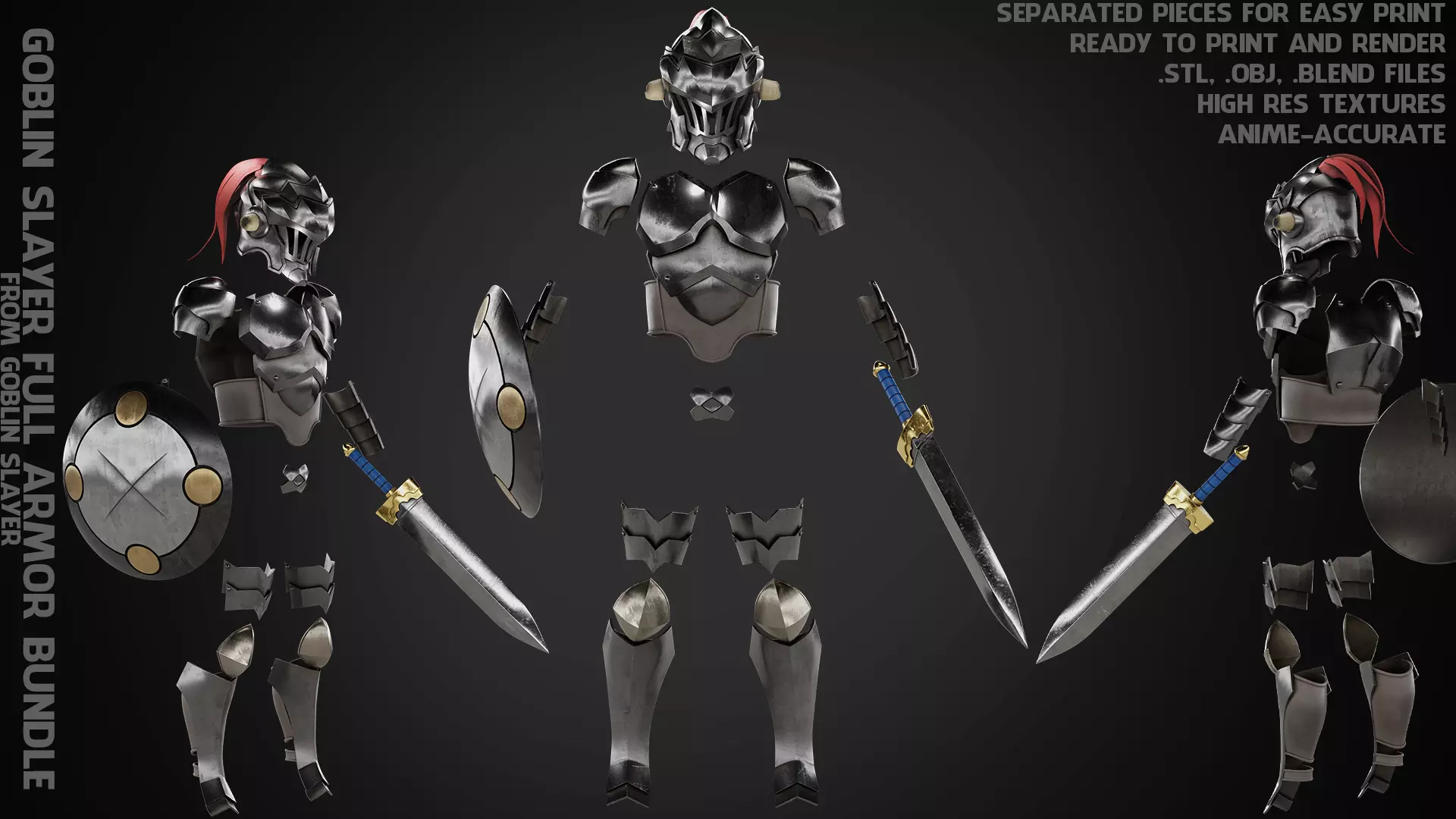 Goblin Slayer Full Armor Bundle with Sword and Shield from Goblin Slayer ready to print and render (anime-accurate) real size