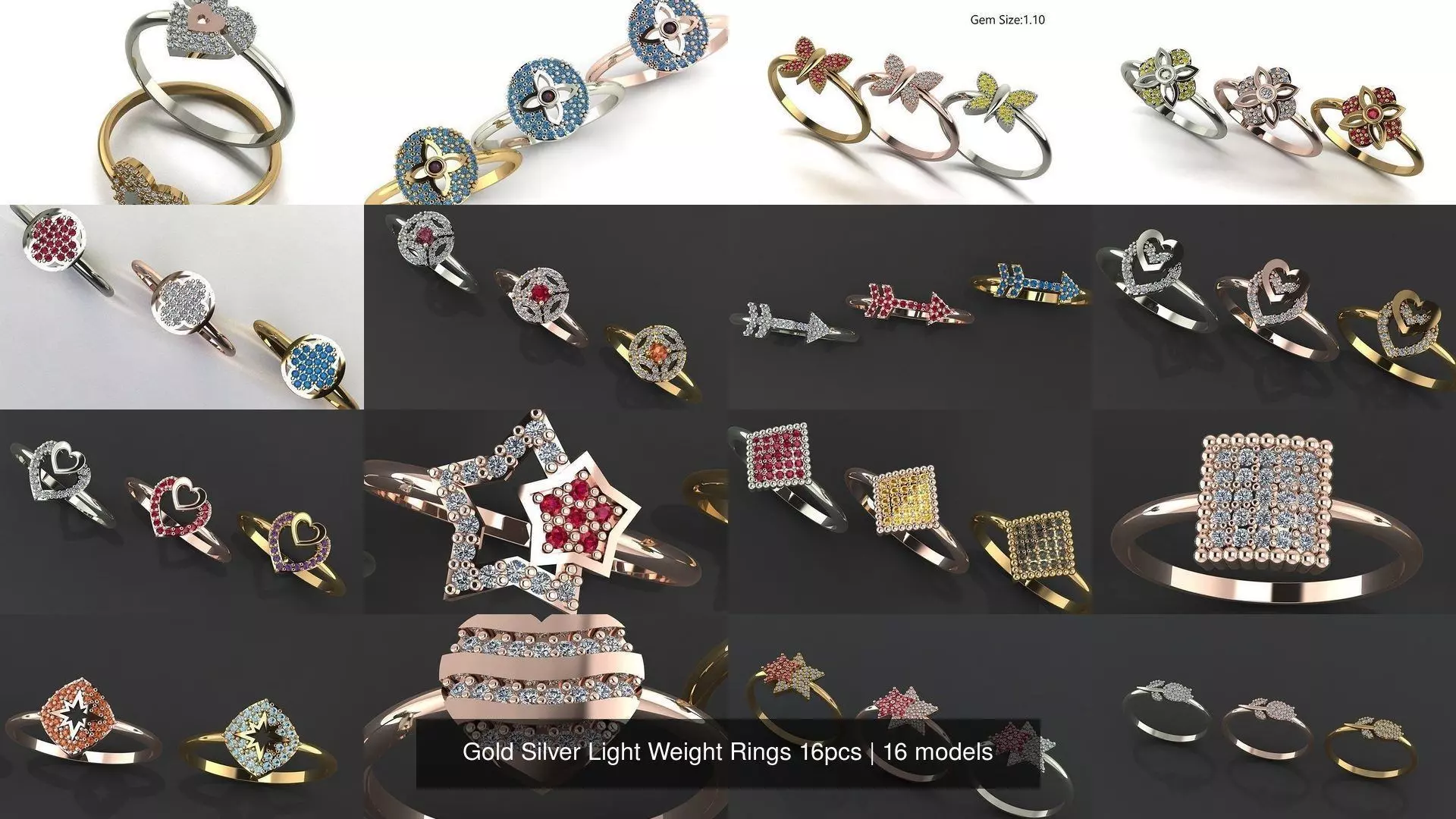 Gold Silver Light Weight Rings 16pcs 3D Model Pack