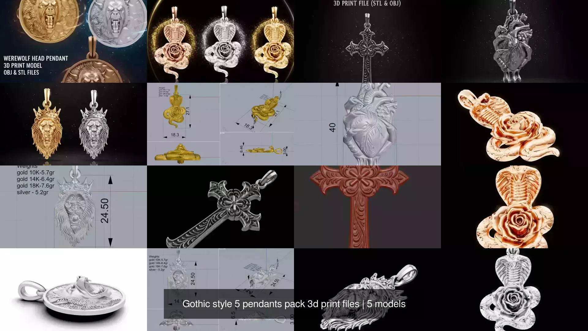 thos Pack includes Gothic style 5 pendants 3d print filesincludes stl and obj filesincludes gothic style CrossSnake and rosewerewolfanatomical herat in monster handKing Lion