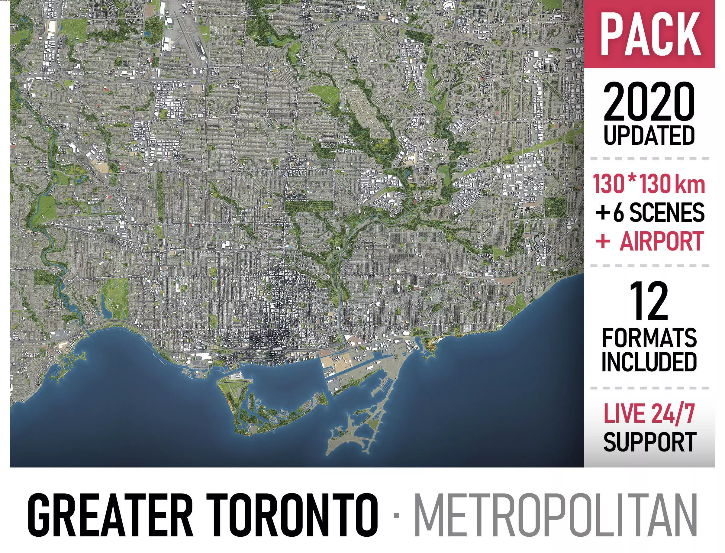 This is exact and accurate to scale 3D city model of Greater Toronto Metropolitan Area based on GIS data (September 2020)