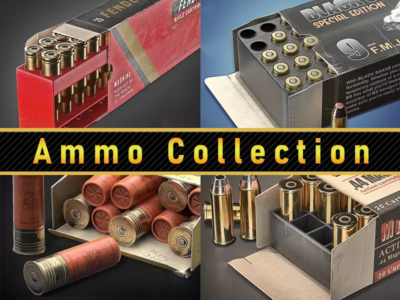 VR / AR / Low-poly / Game ready / collection of ammunition pack 3D MODELS