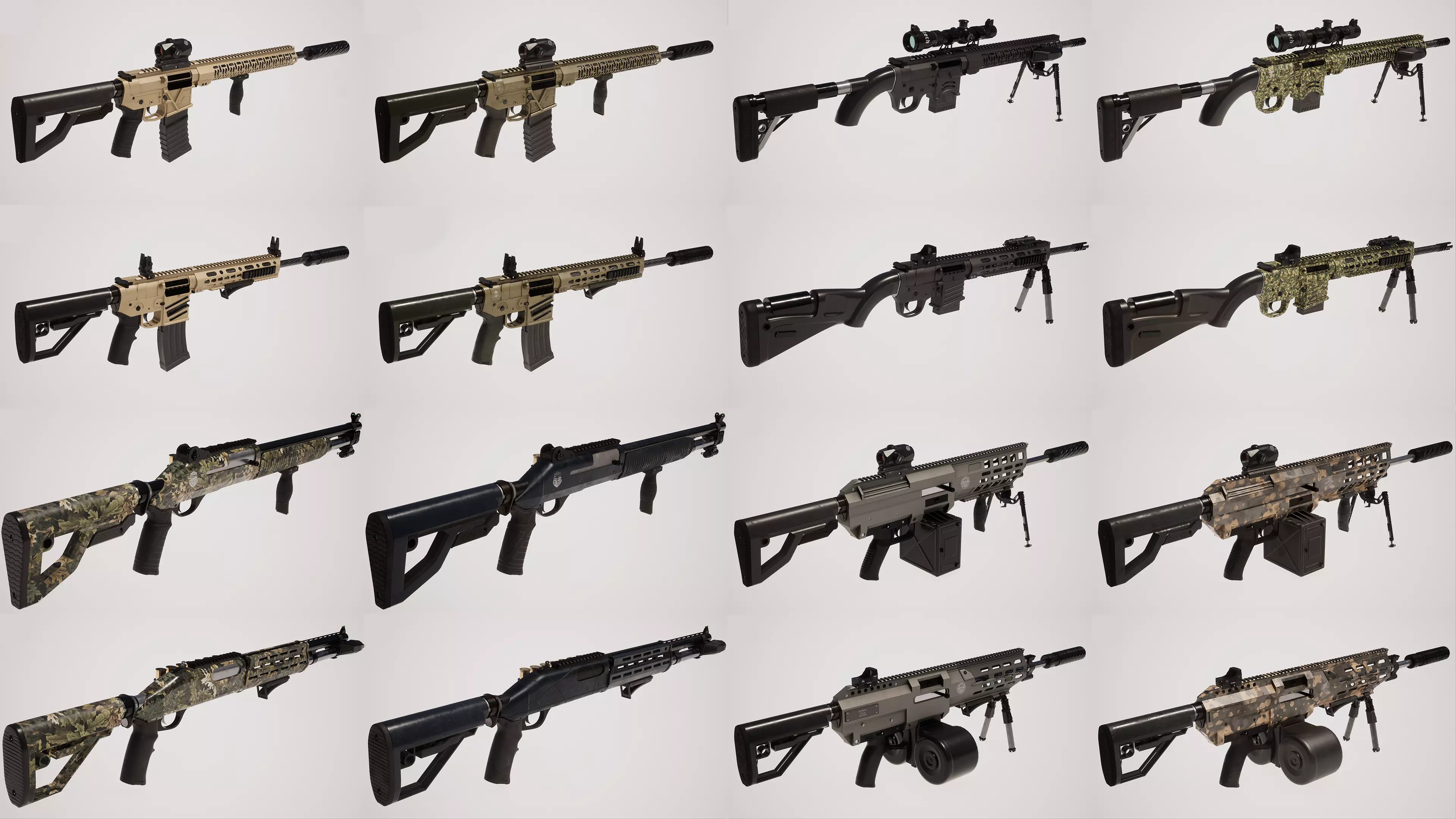 This Guns Collection is a high quality, photo real model that will enhance detail and realism to any of your rendering projects. File units - cm. The model has a fully textured, detailed design that allows for close-up renders, and was originally modeled in 3ds Max 2021 and rendered with Unreal Engine 5 and V-Ray.