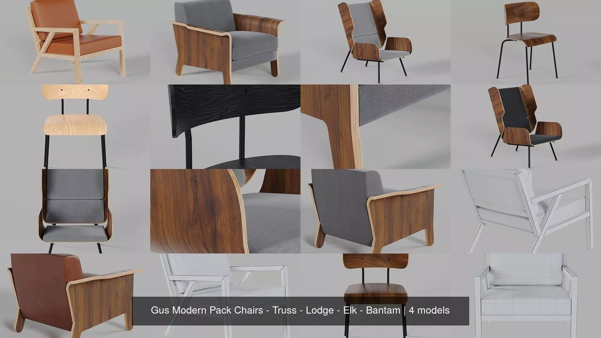 Gus Modern Pack Chairs: Truss, Lodge, Elk and Bantam.