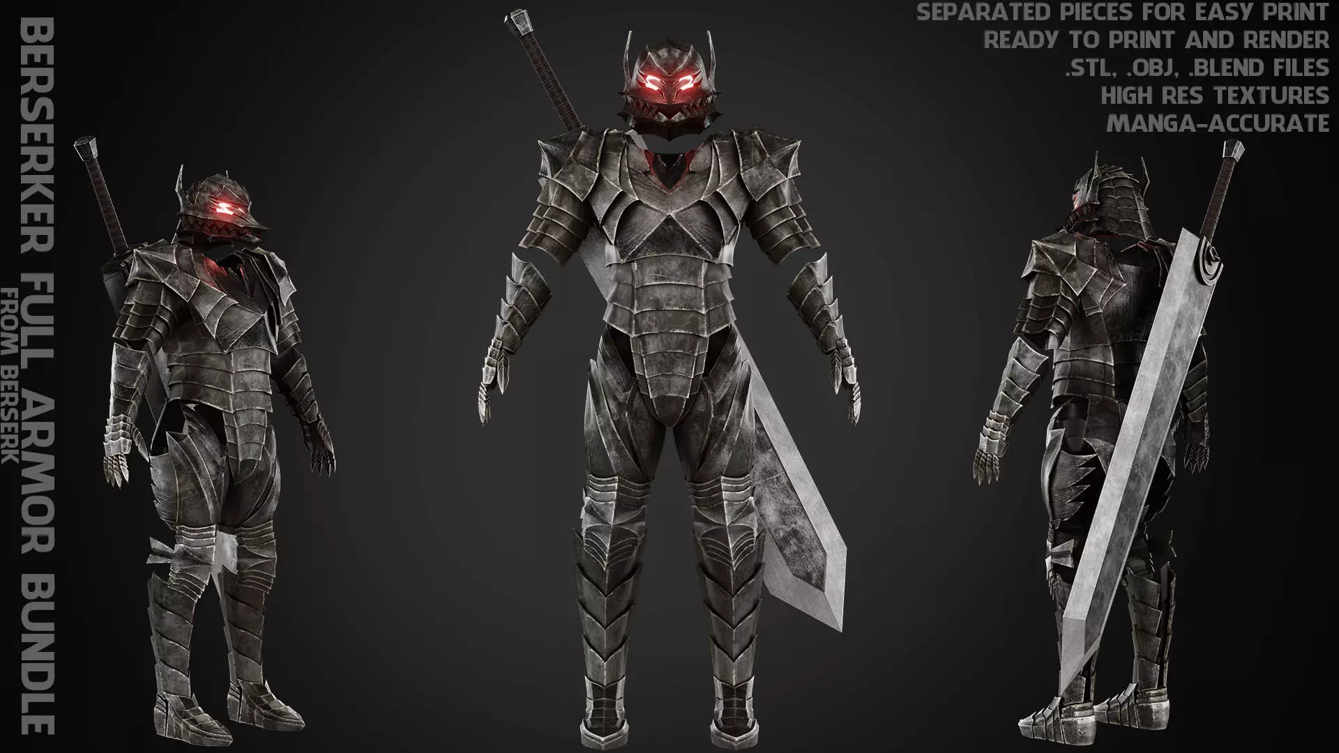 Guts Berserker Full Armor with Dragon Slayer Sword from Berserk Manga ready to print and render (manga-accurate) real size