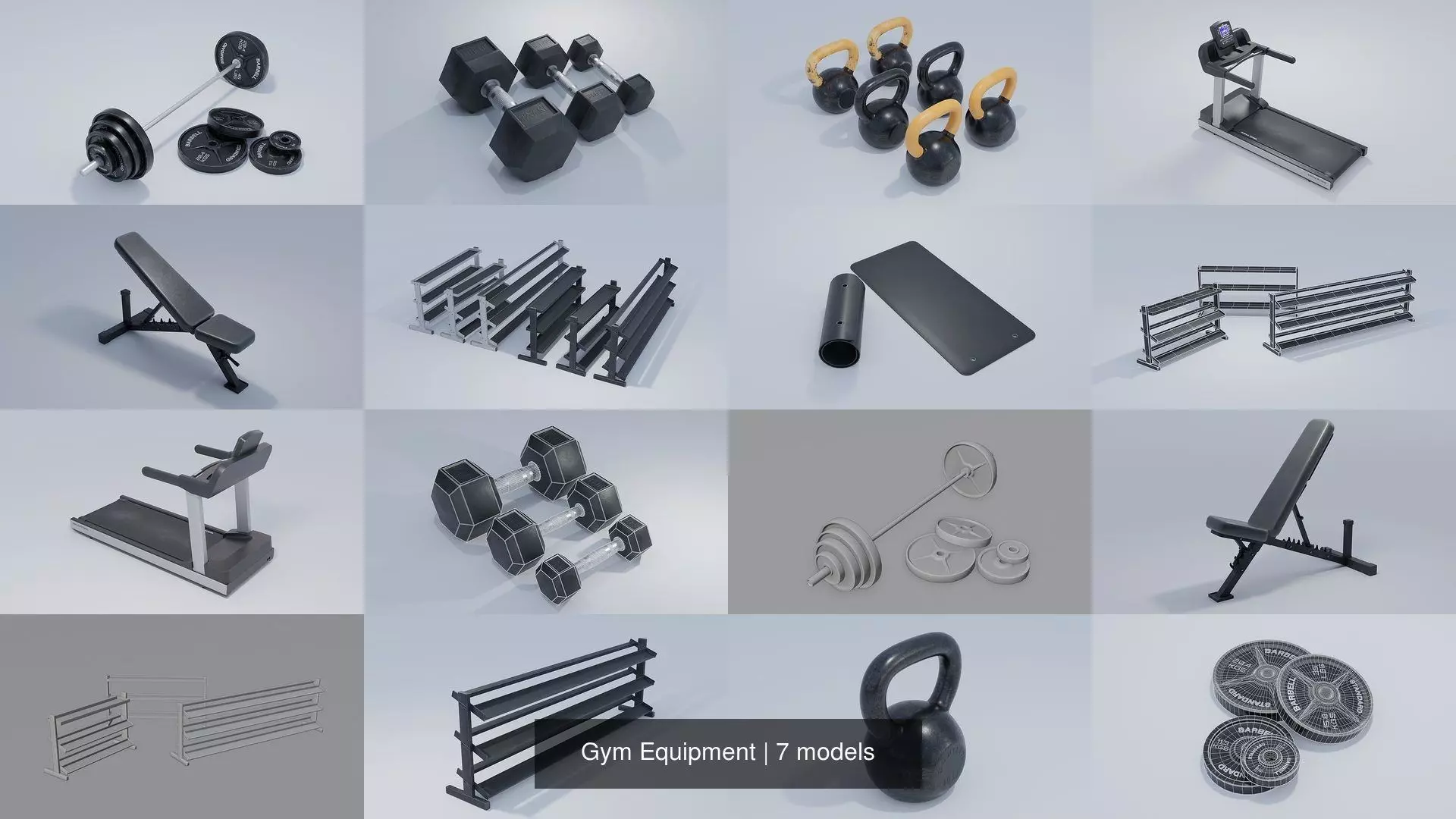 This collection includes a multitude of props to decorate any gym scene or animation. Each asset comes with its own texture set in multiple variations to best suit the quality you desire. The models areviewable from all angles and distances.