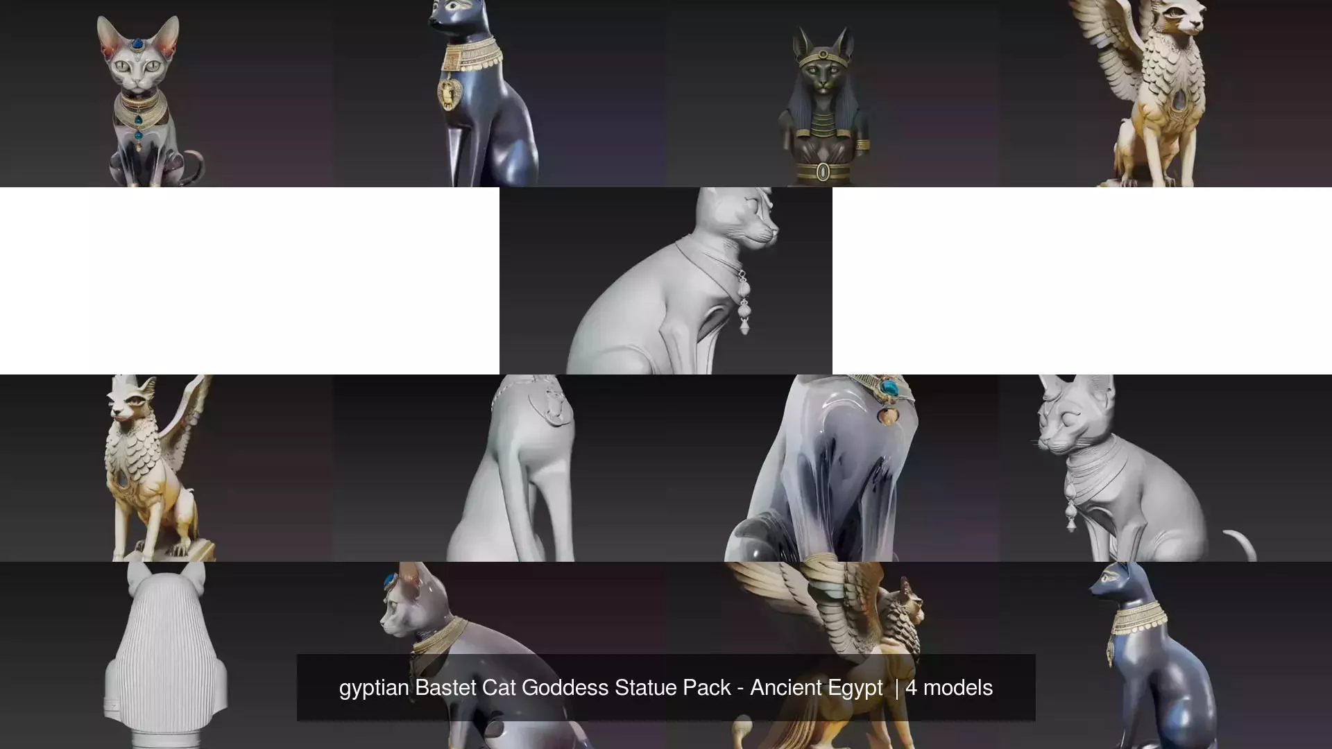 This pack features a series of detailed Egyptian-style cat sculptures designed with ornamental elements inspired by ancient Egyptian art and mythology.