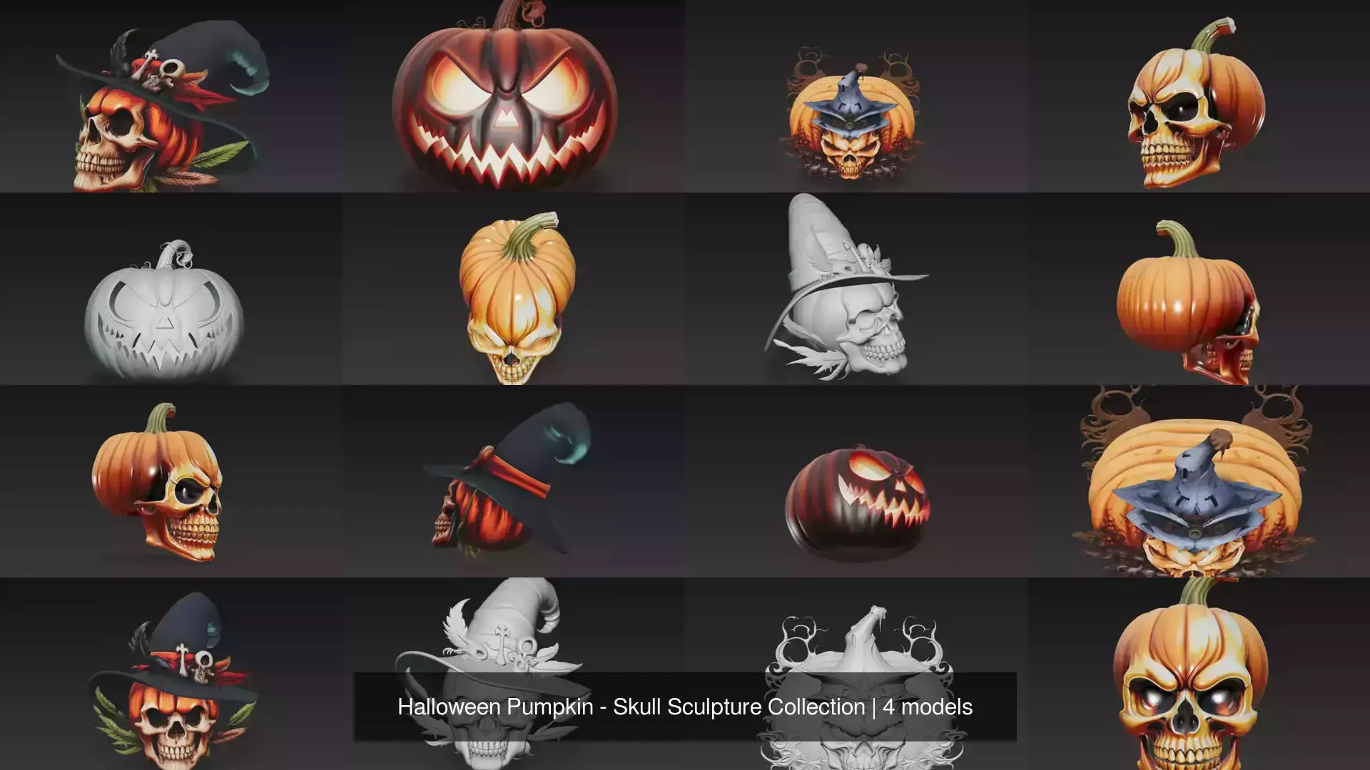 Step into the spirit of Halloween with this eerie collection of stylized pumpkins, skulls, and witch-themed sculptures.Each piece captures dark fantasy energy — blending gothic charm and seasonal magic for both collectors and 3D artists.All models come in clean high-resolution formats (STL, OBJ, FBX, GLB) — ideal for 3D printing or digital rendering.
