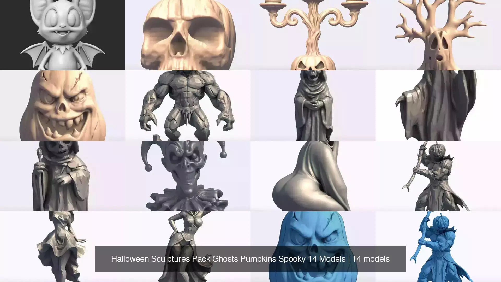 ✔ Pack includes:Cute & creepy ghost figuresPumpkin monsters & charactersHalloween clown & jester bustDecorative props (pumpkin candle holder, bat, statues)Stylized & low poly Halloween sculptures