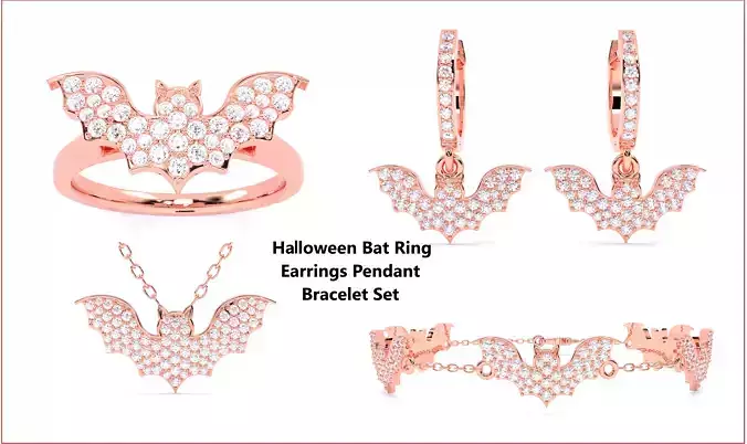 - This collection includes Halloween Bat Ring Earrings Pendant Bracelet Set
