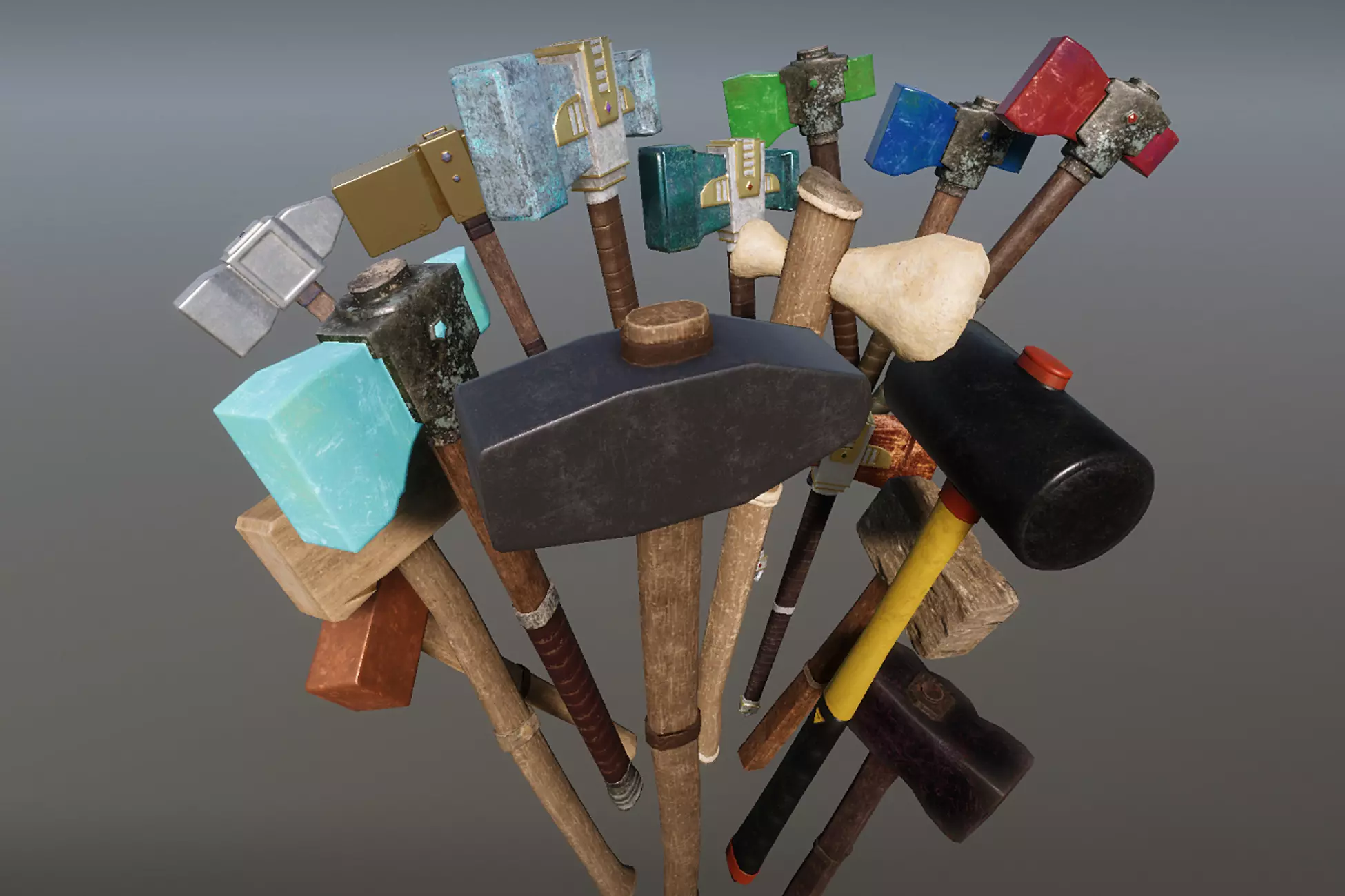 Enhance your best survival/crafting projects (game, render, advertising, design visualization, VR/AR...) with these awesome 16 high-quality pbr low-poly hammers !